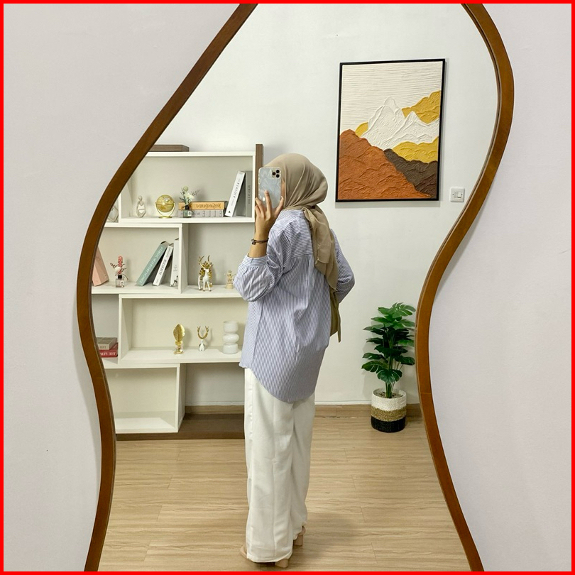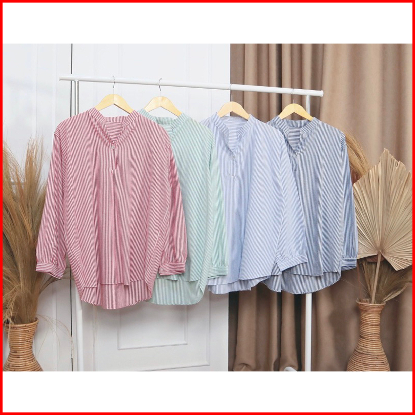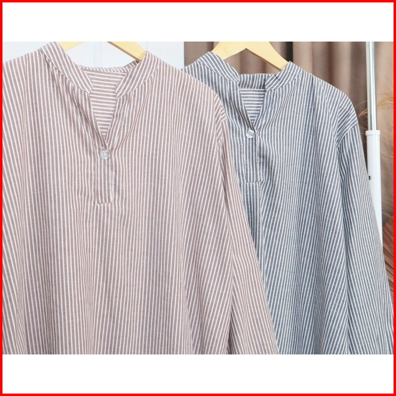 Kara.id Syarla Shirt Atasan Wanita V Neck Kemeja Wanita Salur Oversized - Atasan Wanita V Neck - Stripe Shirt