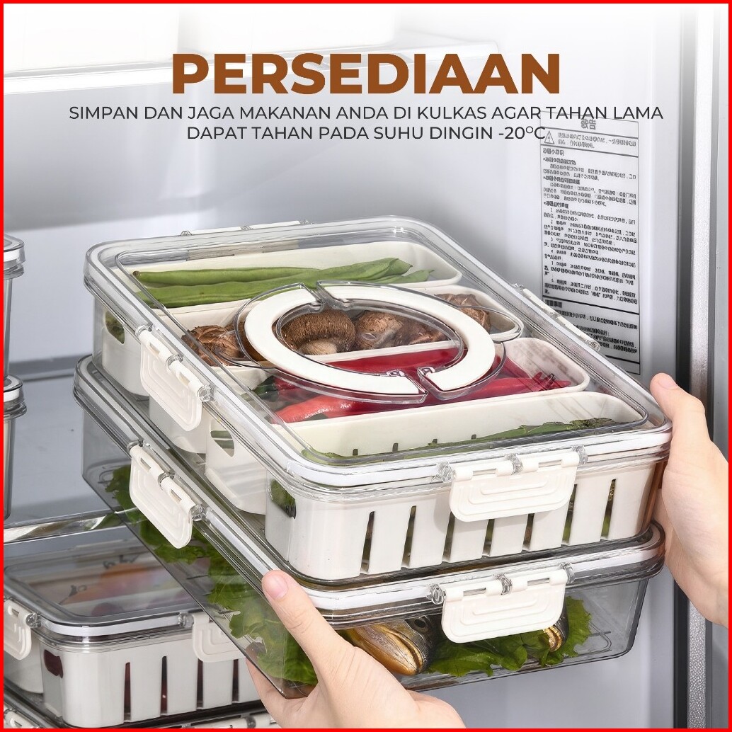 Kotak Penyimpanan Kulkas Kontainer Kulkas - Keranjang Pengering Sayuran Buah Dengan Saringan