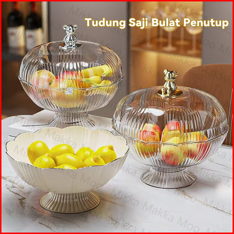 Mikkamakkamoo Tudung Saji Bulat Penutup Makanan Transparan Keranjang Buah Tempat Snack Permen Buah Nampan Mangkok Anesth