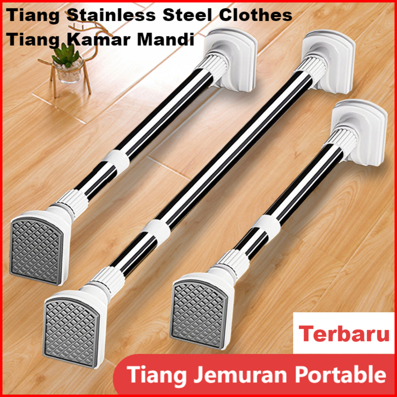 240cm Tiang Jemuran Portable Tiang Stainless Steel Clothes Tiang Pipa Fleksibel Tiang Kamar Mandi