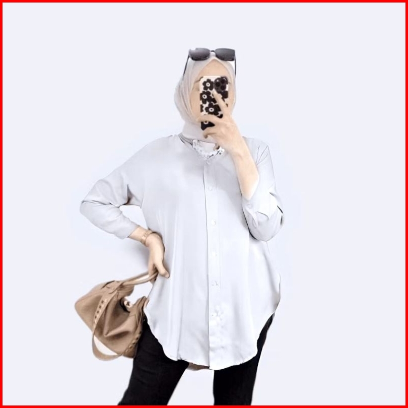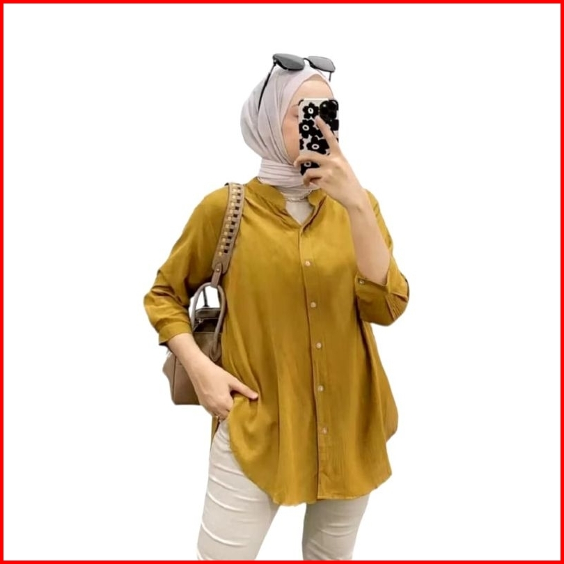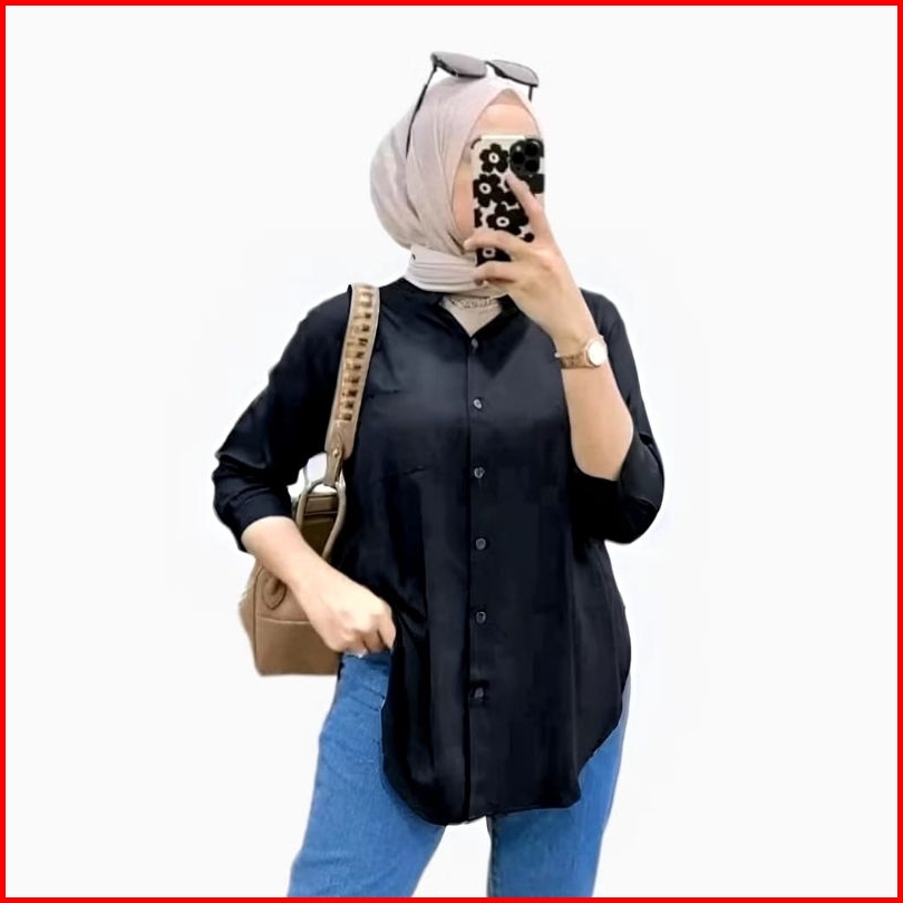 Kemeja Wanita Rayon Twill Polos Top Blouse Basic Kemeja Wanita Lengan 7 8 Wanita Over Size