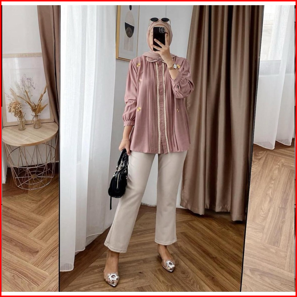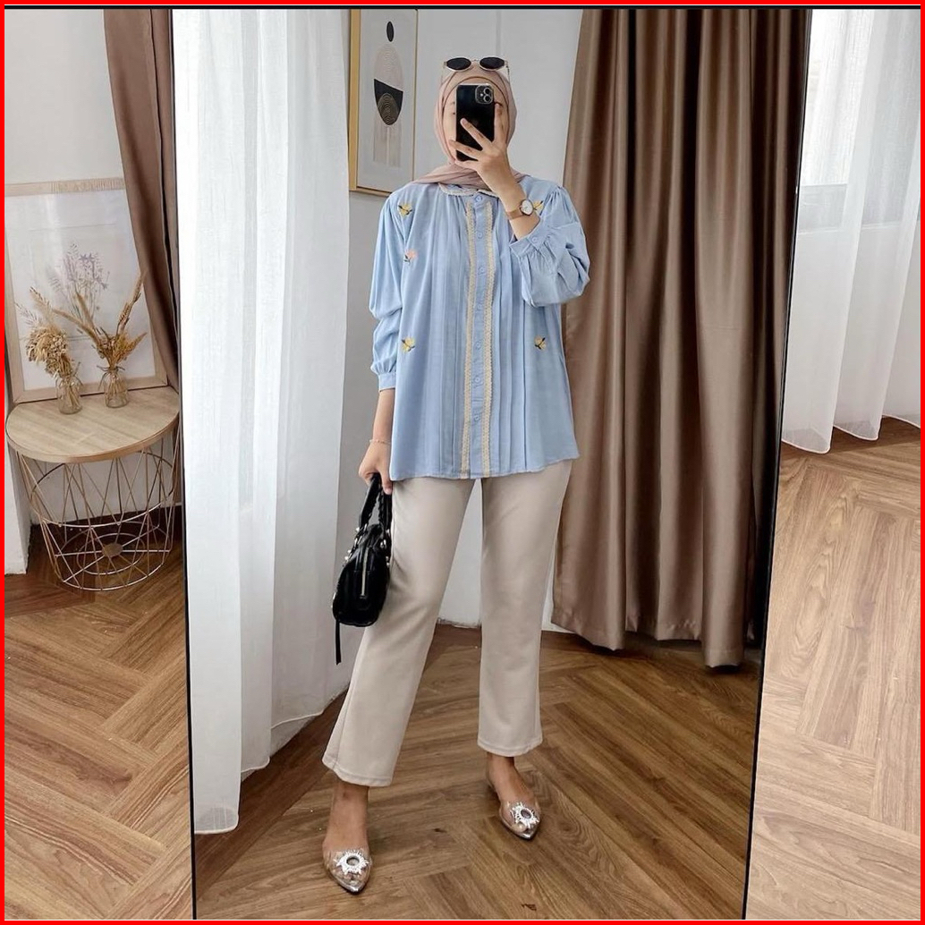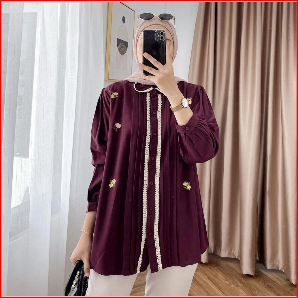 Nayla Shirt Kemeja Wanita Bordir Renda Terbaru Linen Premium