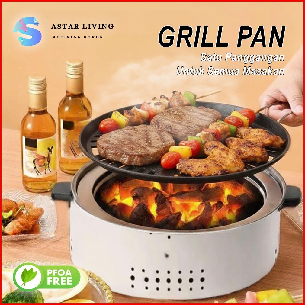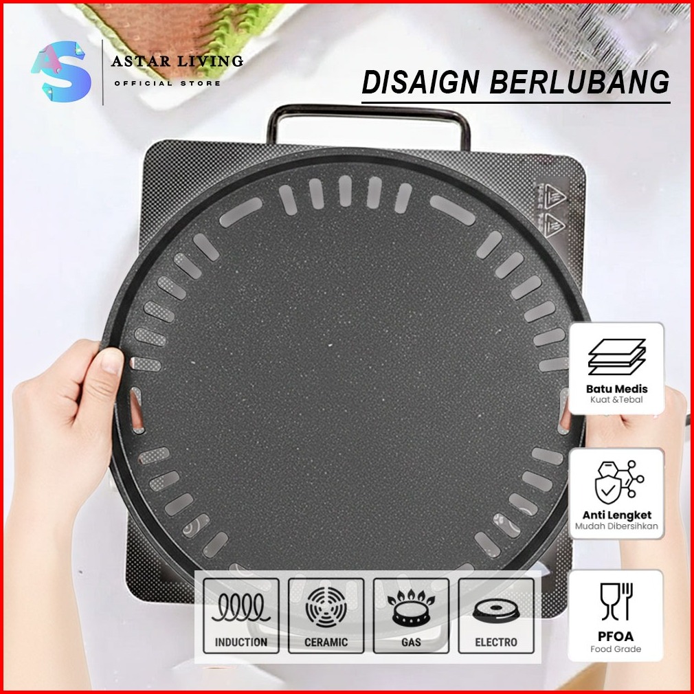 Al Panggangan Bbq 29cm Grill Pan Panggangan Bulat Anti Lengket Lapisan Teflon