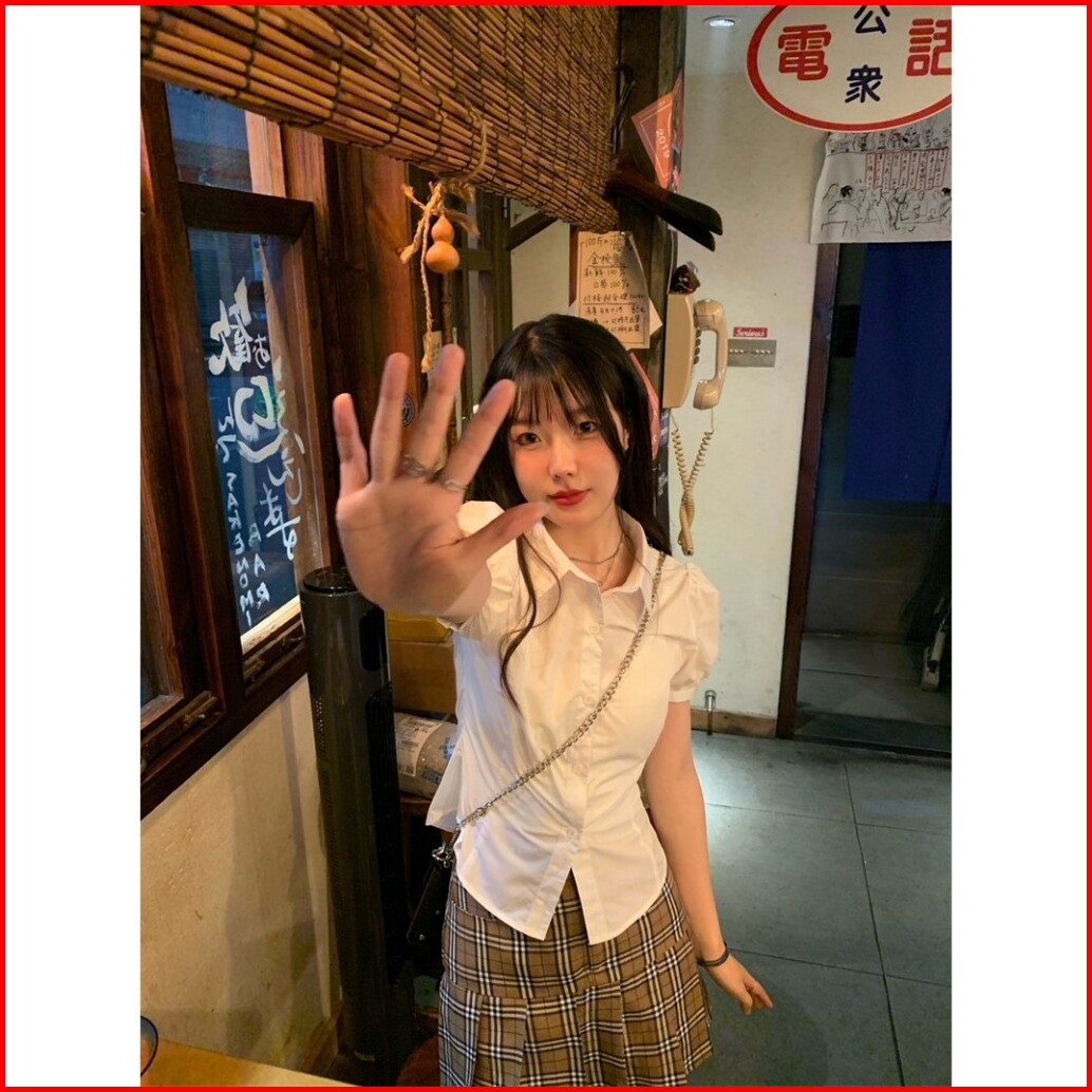Kemeja Musim Panas Wanita Atasan Kemeja Putih Lengan Pendek Kasual Gaya Korea