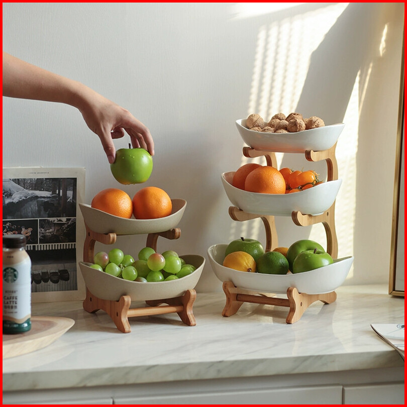 Ami Plates Nordic Tempat Buah Buah Wadah Mewah Yang Dapat Dua Lapisan Estetik Piring Nampan