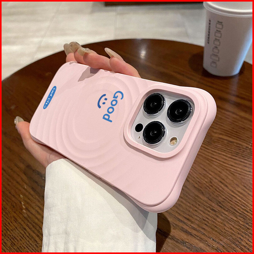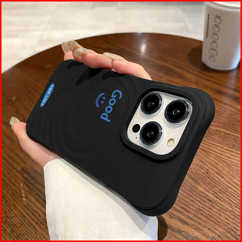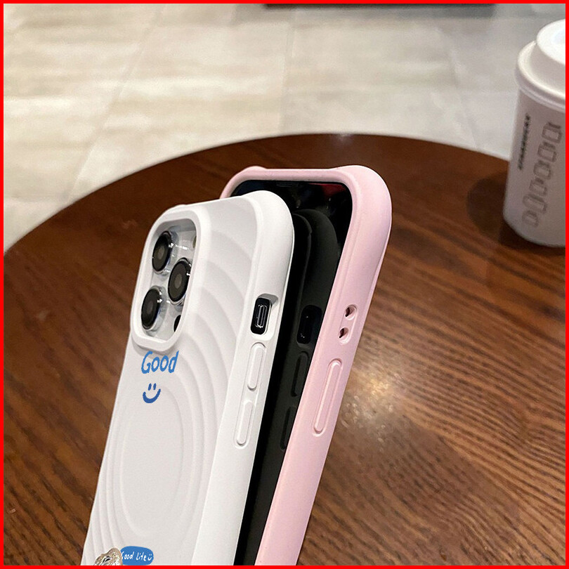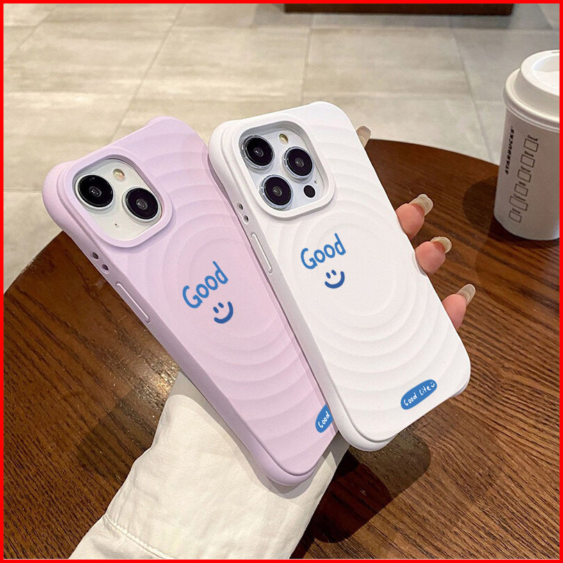 Wave Silicone Phone Case For Iphone 13 11 12 14 15 16 Pro Pro Max - Teks Good Dengan Emoji Senyum Design - Transparent A