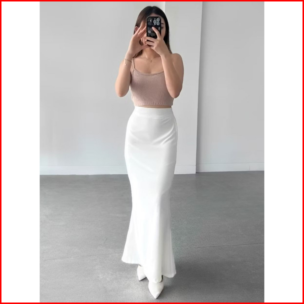 Skirt Rok Flare Lunar Mermaid Duyung Panjang Maxi Midi Wanita Bahan Scuba Melar Style Kekinian 2025