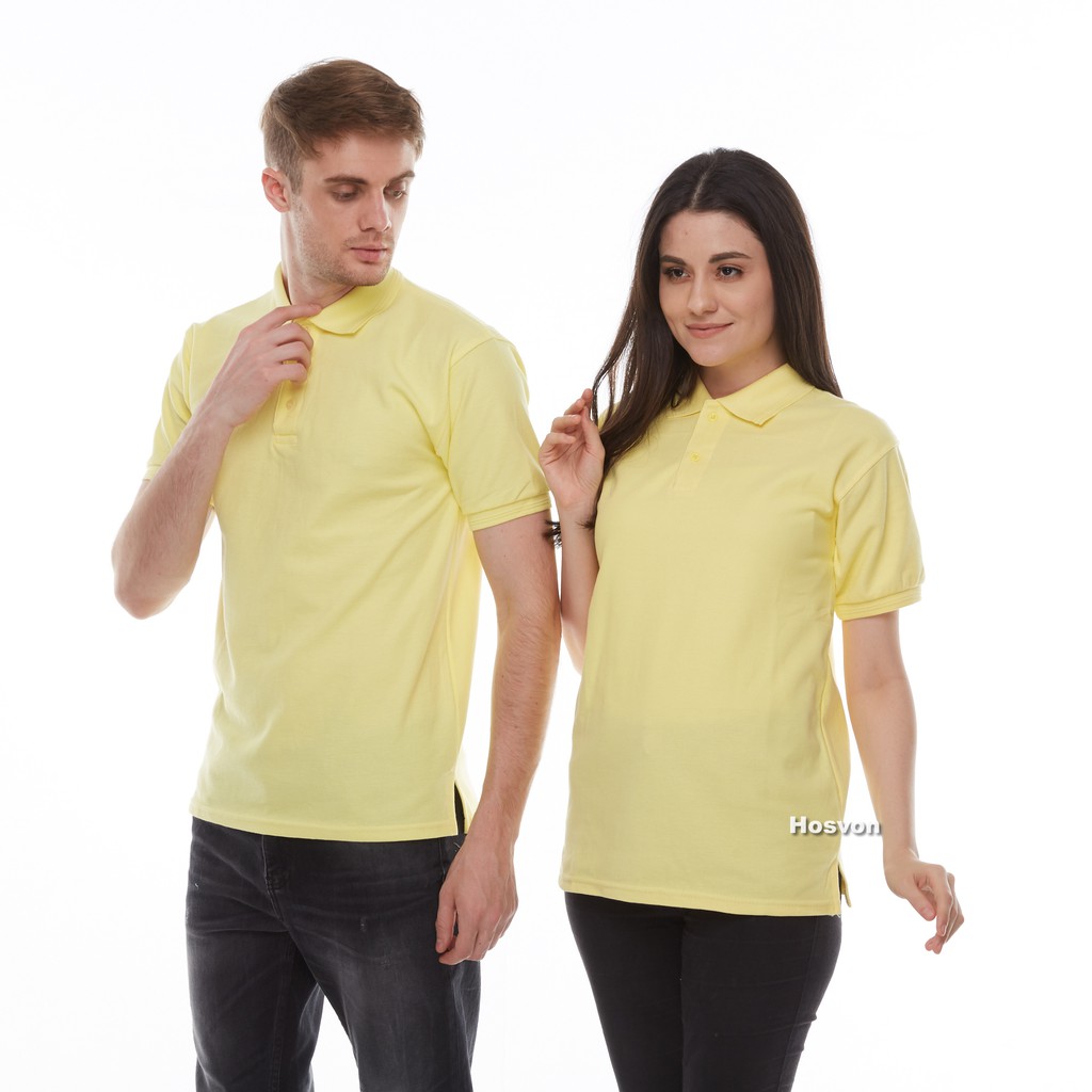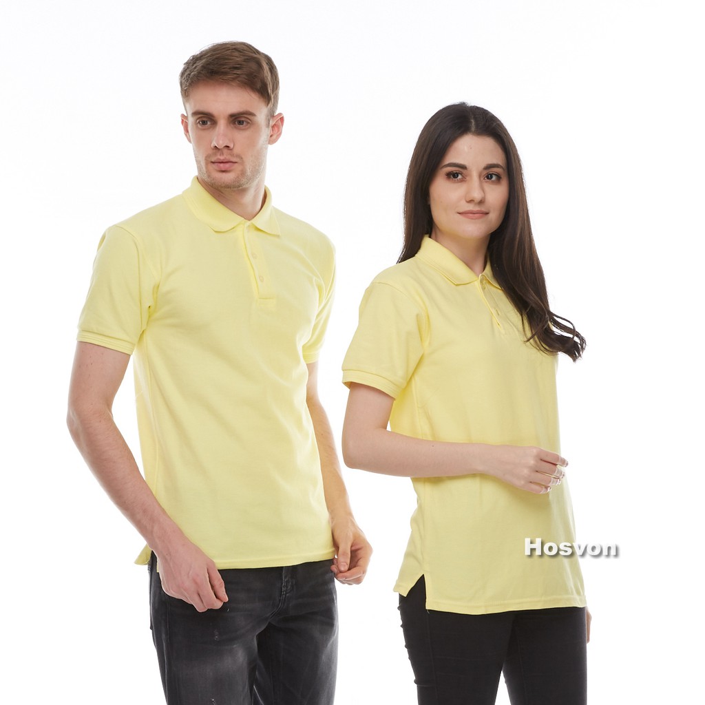 Kuning Hosvon Kaos Kerah Wangki Cotton 100 PERSEN Size S-Xxl ( Pria & Wanita )
