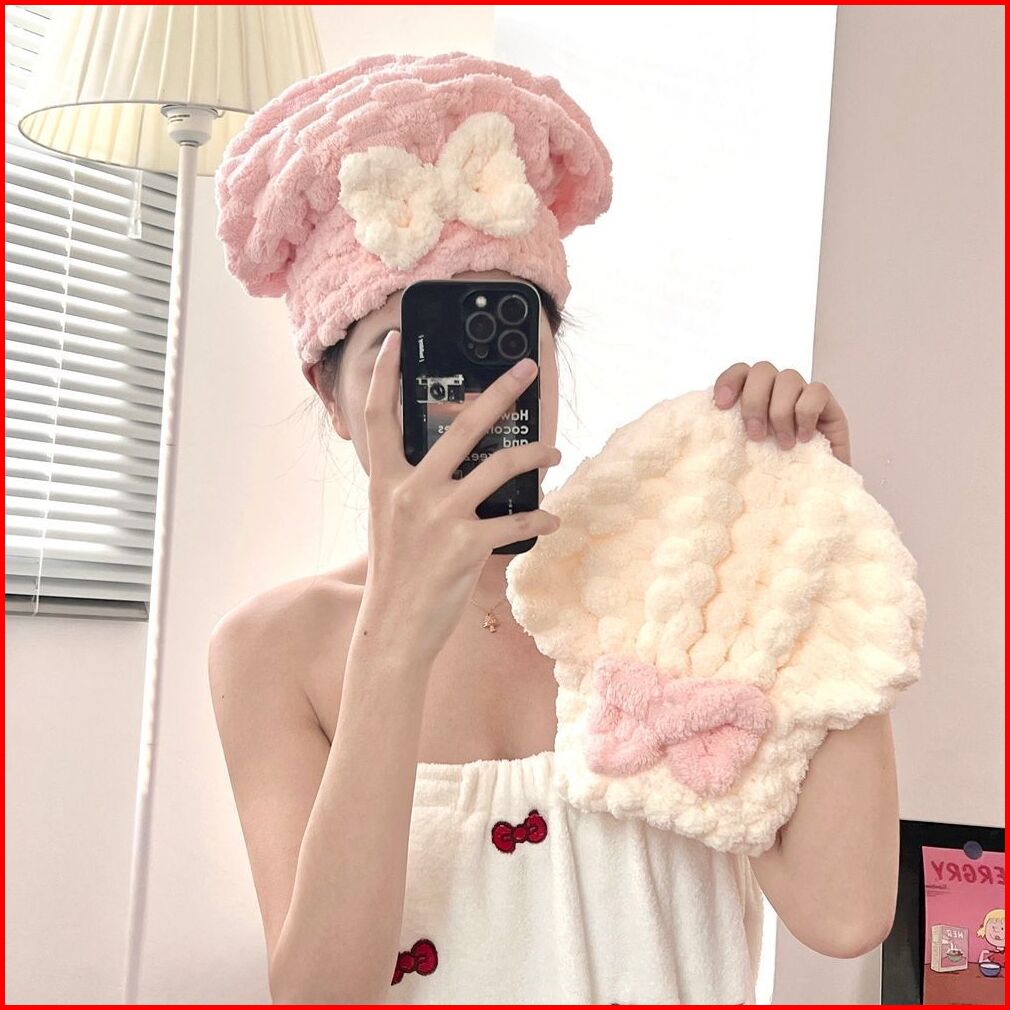 Handuk Rambut Keramas Pengering Rambut Shower Dry Hair Cap Menyerap Perlengkapan Alat Mandi Pita Cute Topi Handuk