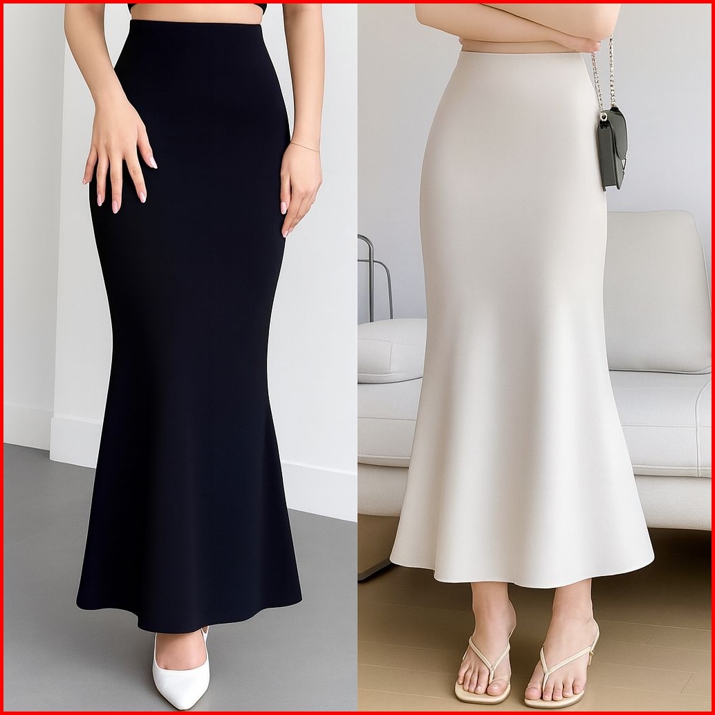 Lunar Mermaid Skirt - Rok Duyung Panjang Midi Maxi Highwaist - Rok Flare Korean Style Basic Polos Wanita