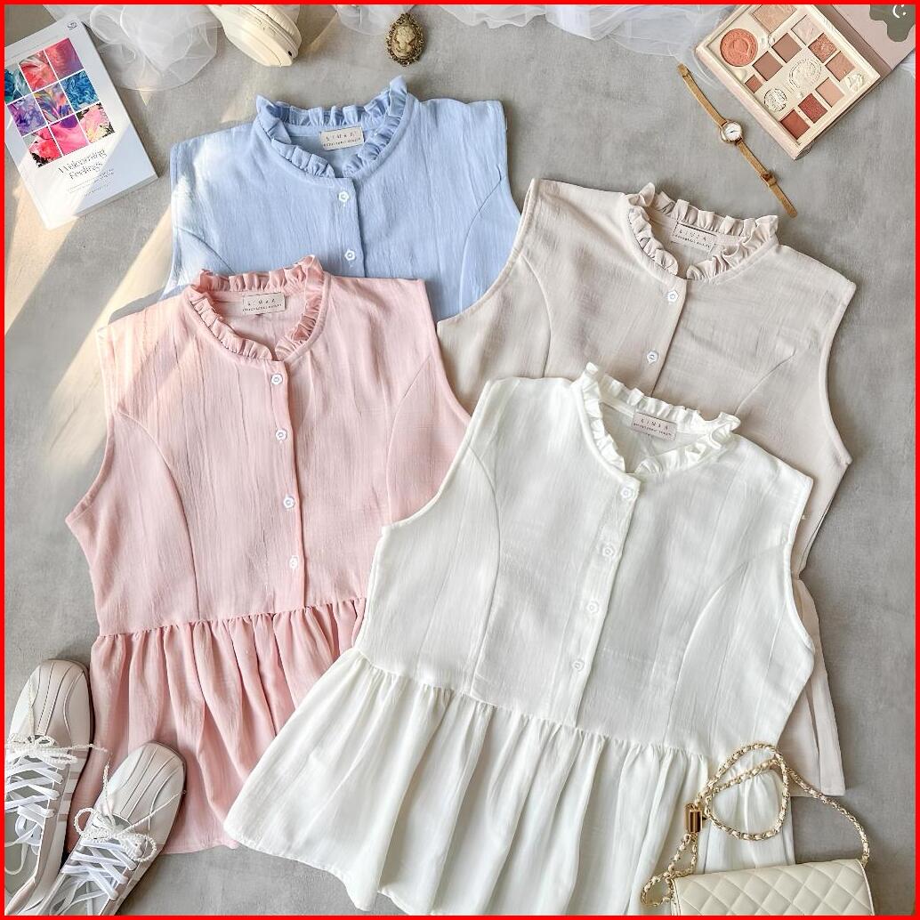 Inner Blouse Blouse Ruffle Sleeveless Blouse Tanpa Lengan Busui Friendly Inner Blouse Ruffle Korean Style