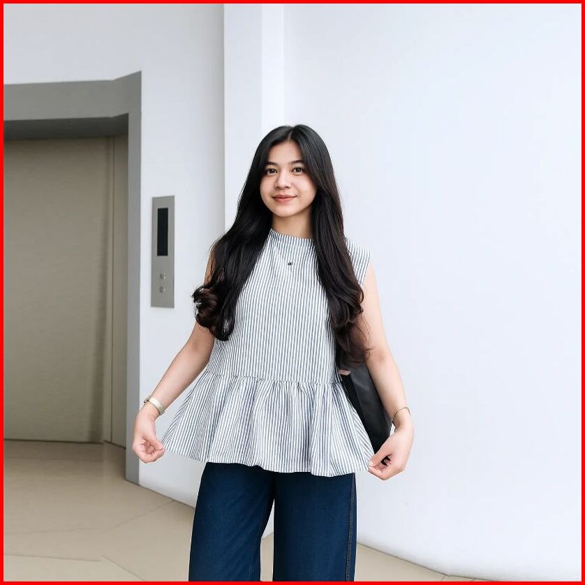 Amora Vest Inner Peplum Top Inner Cardigan Stripe Blouse Top Balon Korean Style Atasan Wanita Casual Rompi