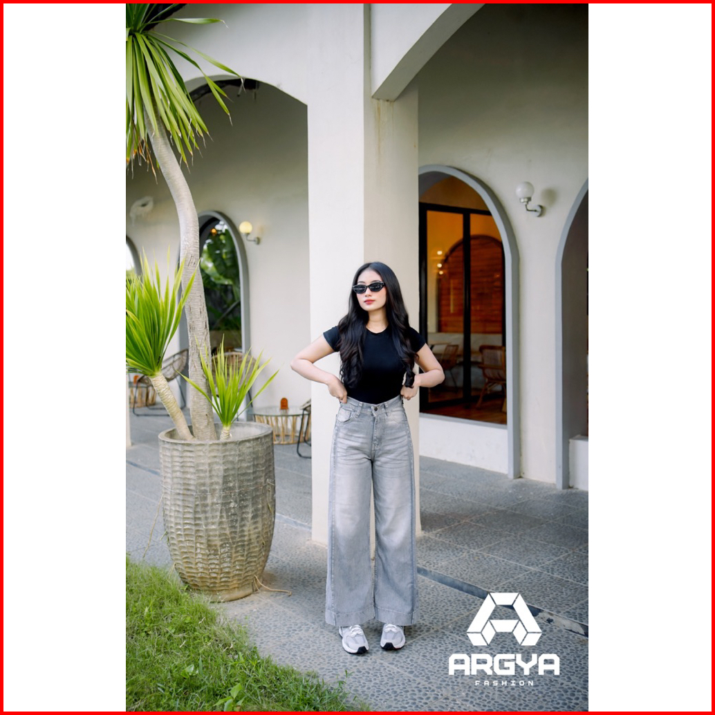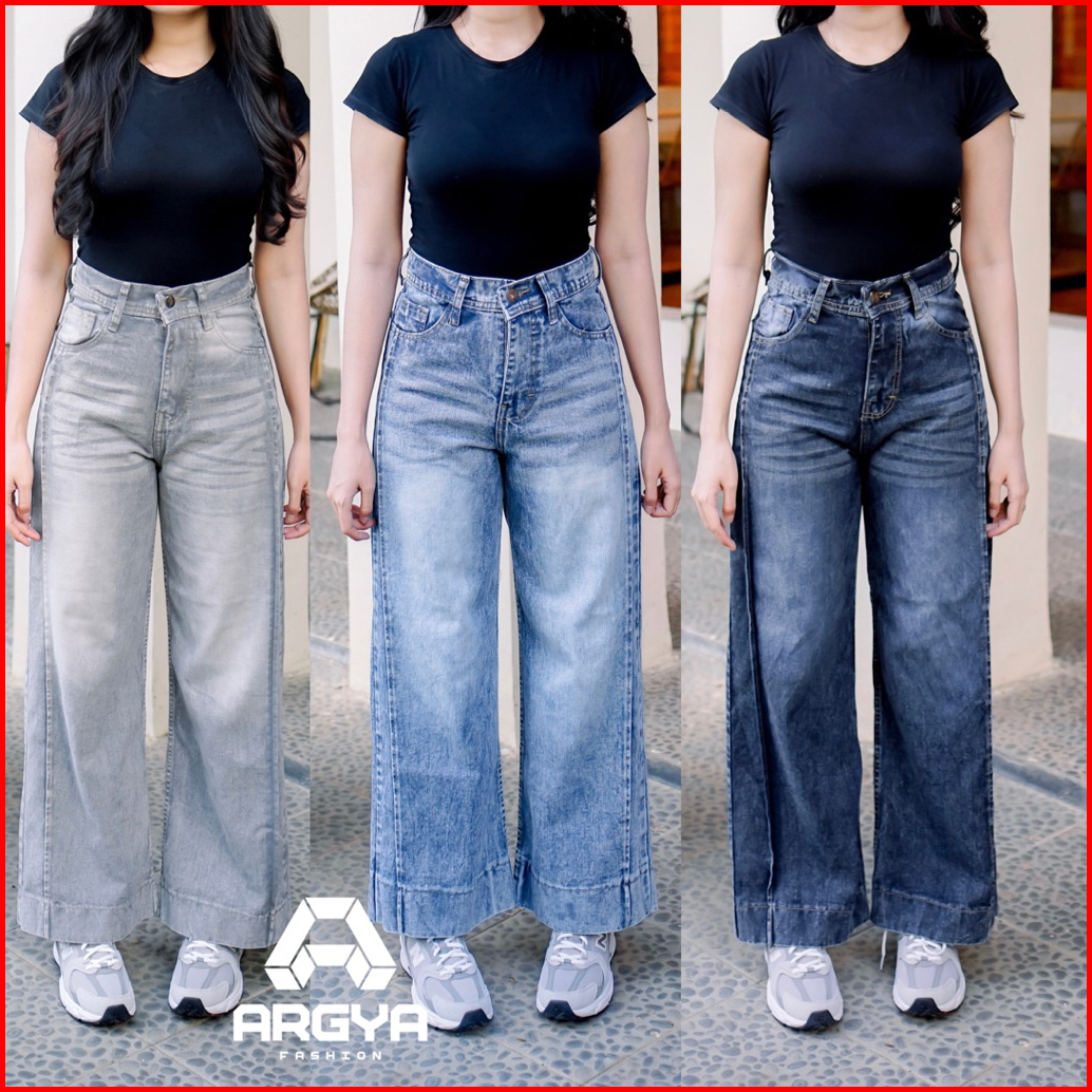 Highwaist Kulot Loose Celana Wide Leg Jeans Korea Style-celana Higwaist Wanita Wide Leg Non Stretch