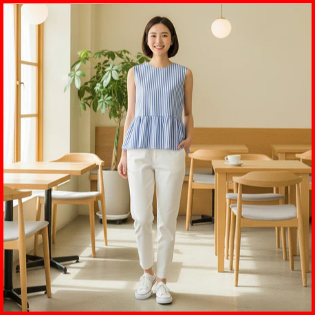 Amora Vest Inner Peplum Top Inner Cardigan Stripe Blouse Top Balon Korean Style