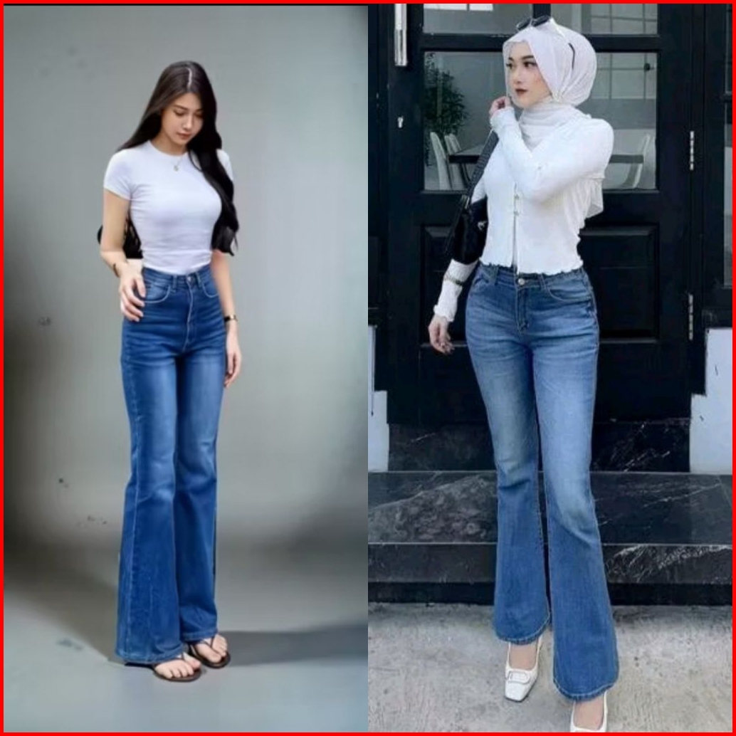 Highwaist Cutbray Jeans Retro 114 - Celana Jeans Cutbray Premium - Celana Jeans Wanita Strech