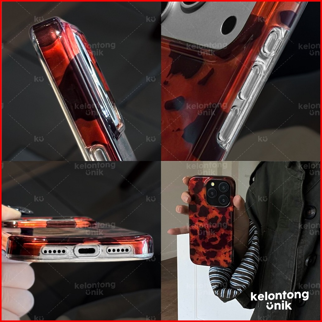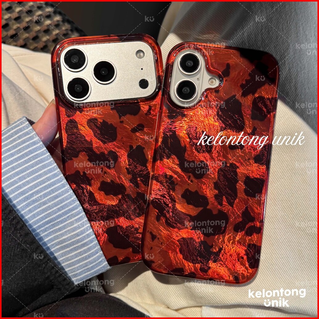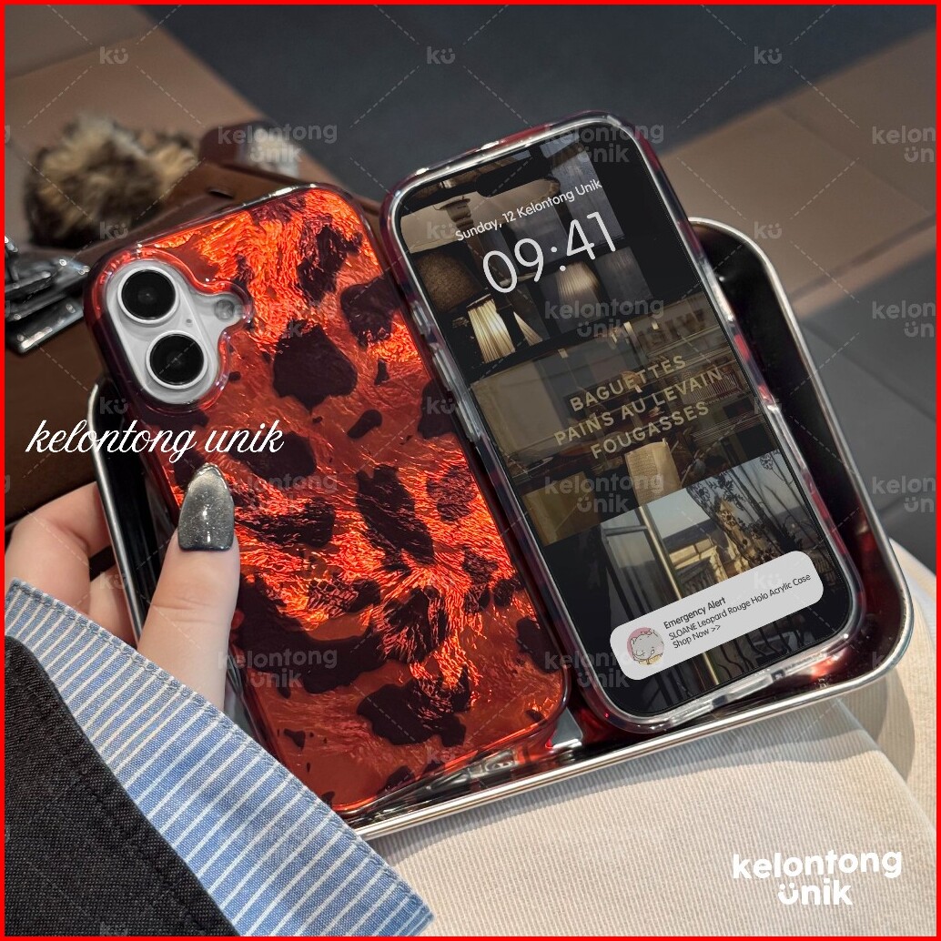 Kelontong Unik Sloane Leopard Rouge Holo Acrylic Case - Hardcase Casing Hp For Iphone 11 12 13 14 15 16 17 Pro Promax Pl