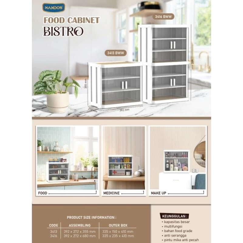 Tempat Penyimpanan Serbaguna Naiba/Food Cabinet Bistro Premium/Rak Makanan, Obat, Make Up