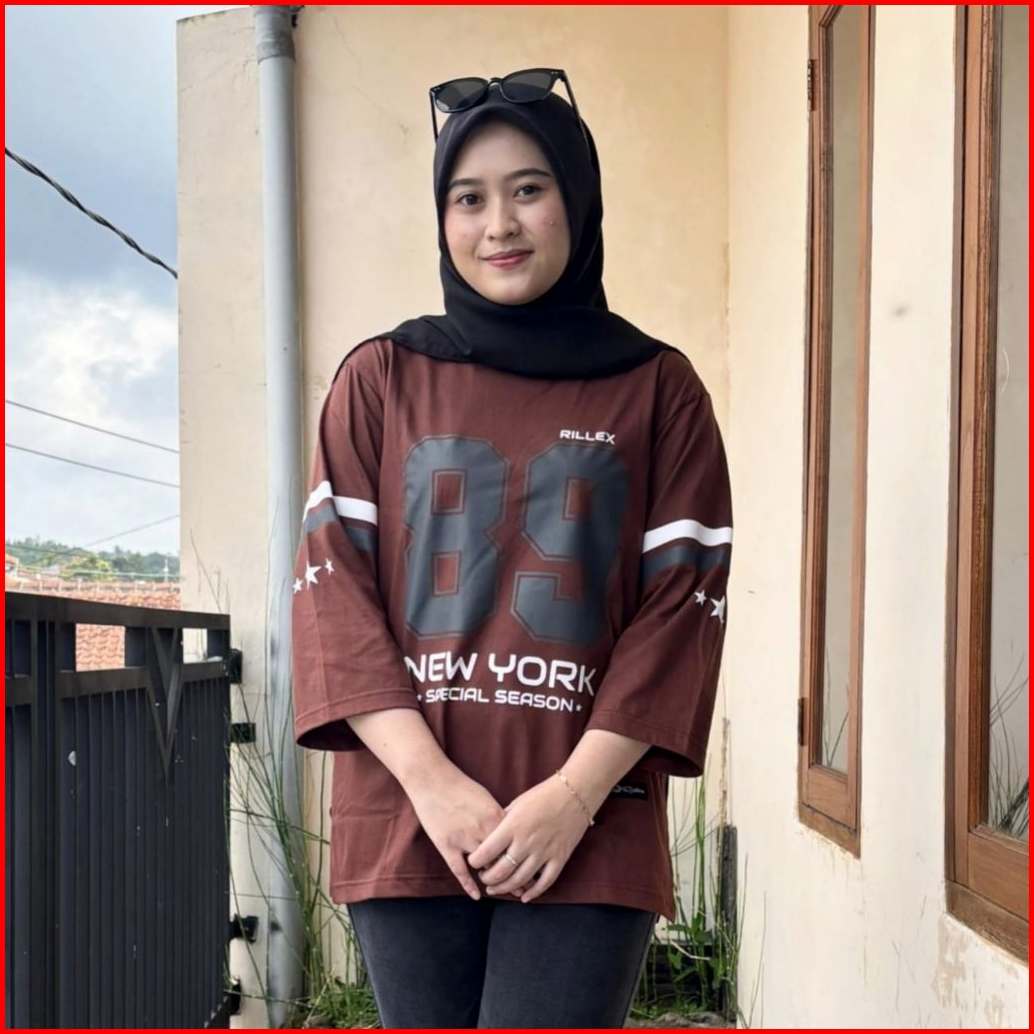 Kaos Wanita Oversize T-shirt Basebal Number Lengan 7 8 Bahan Katun Premium 20s