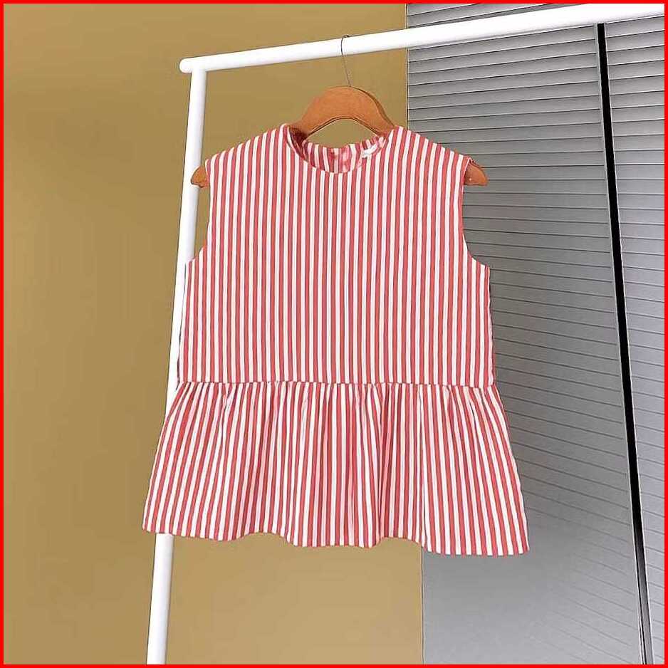Amora Vest Inner Peplum Top Inner Cardigan Stripe Blouse Top Balon Korean Style