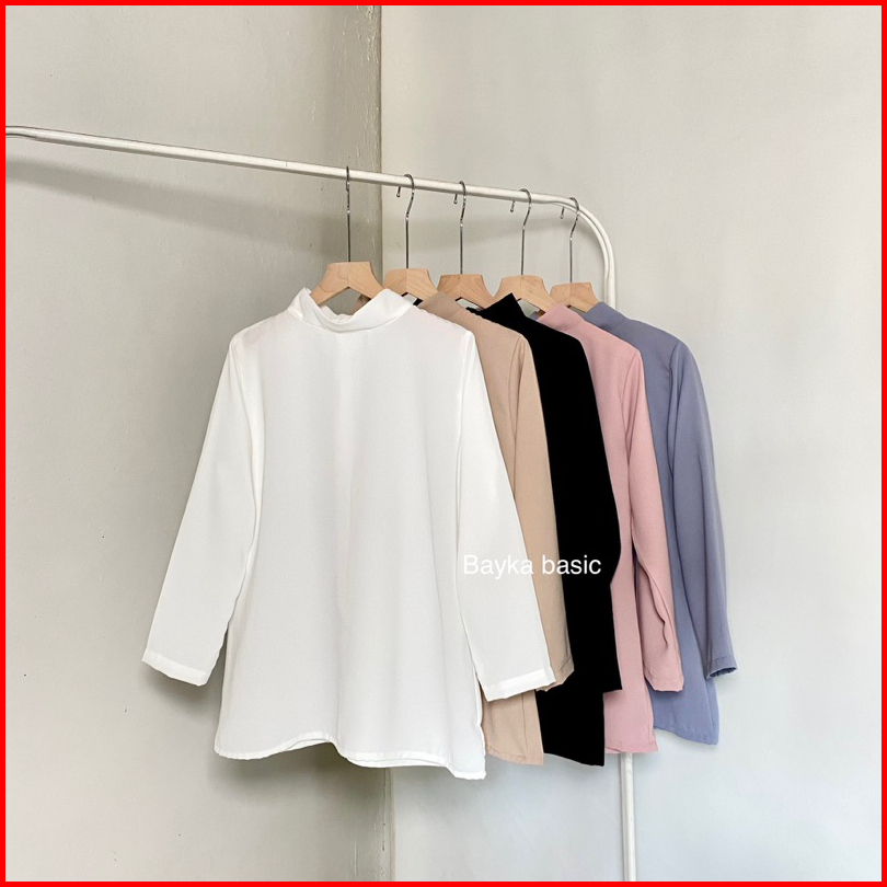 Bayka - Inner Turtleneck Lengan Panjang Inner Daleman Baju Wanita Longsleeve - Putih Hitam Soft Pink Grey Blue Cream M -