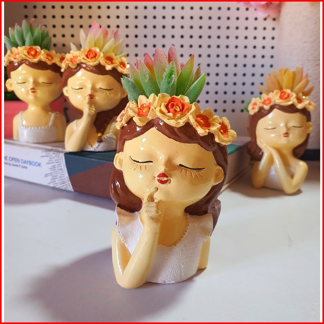 Minicotta - Pot Bunga Unik Lucu Karaker Cute Little Girl Hiasan Meja Kamar Lemari Diy Handmade