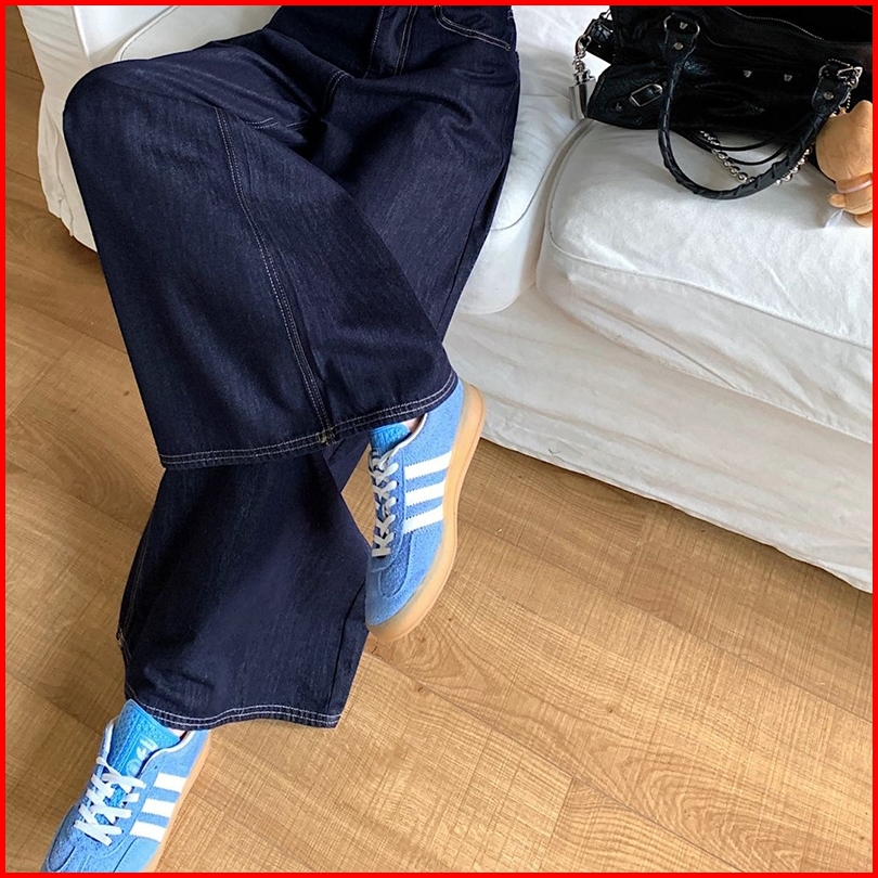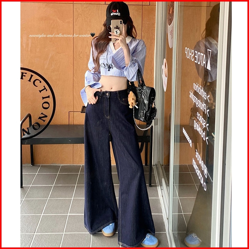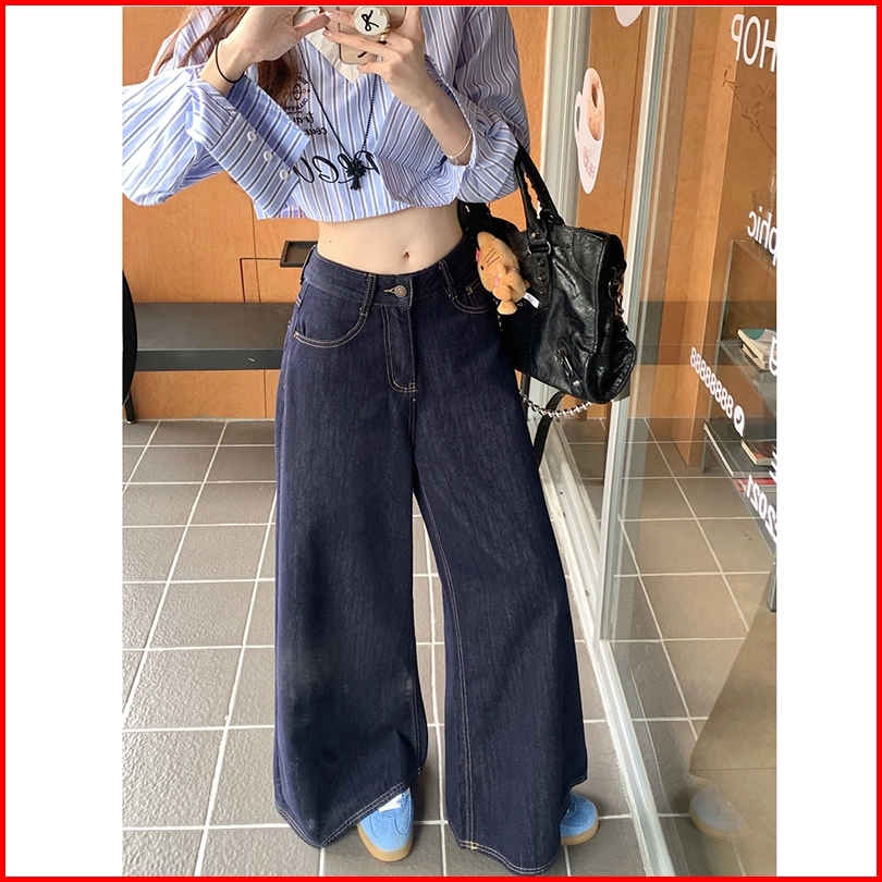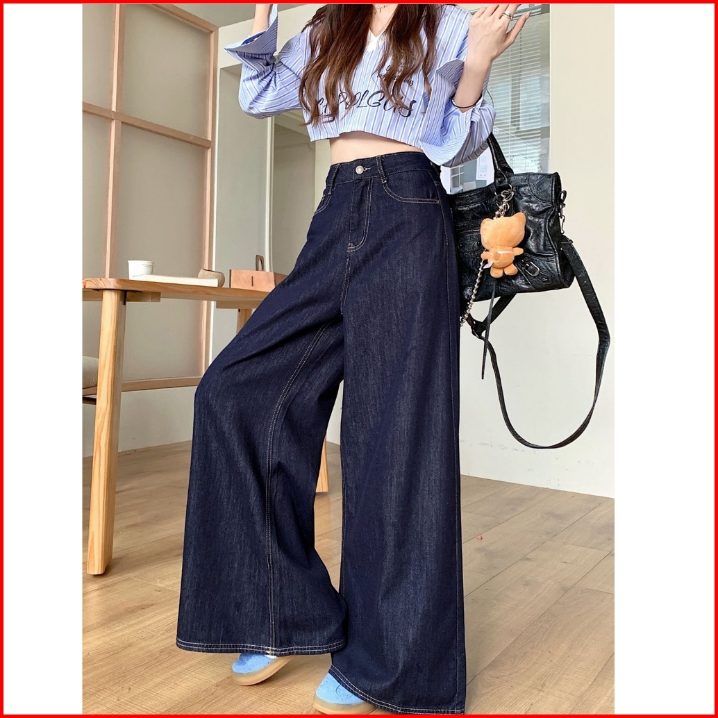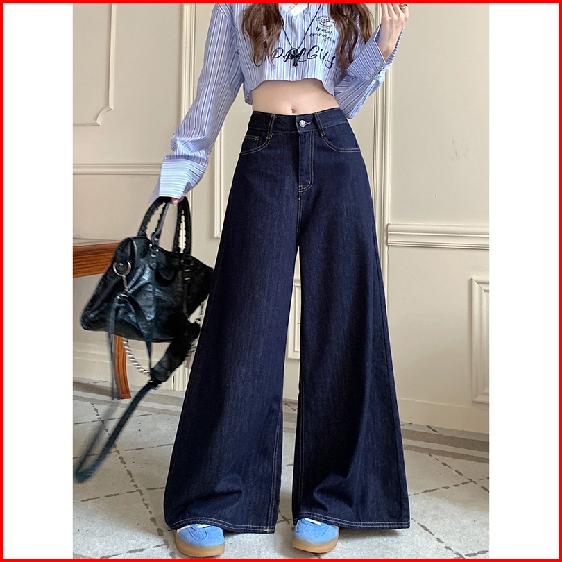 Fashion Wanita Loose Pants Straight Wide Leg Pants Denim Bahan Premium Jeans Pinggang Super Tinggi-wanita Retro Jeans Lu