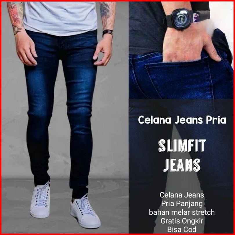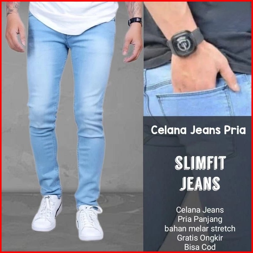Celana Panjang Jeans Pria Bahan Stretch Melar Pensil Slimfit Cowok Panjang Cowo Skinny Promo Celana Jeans Pria
