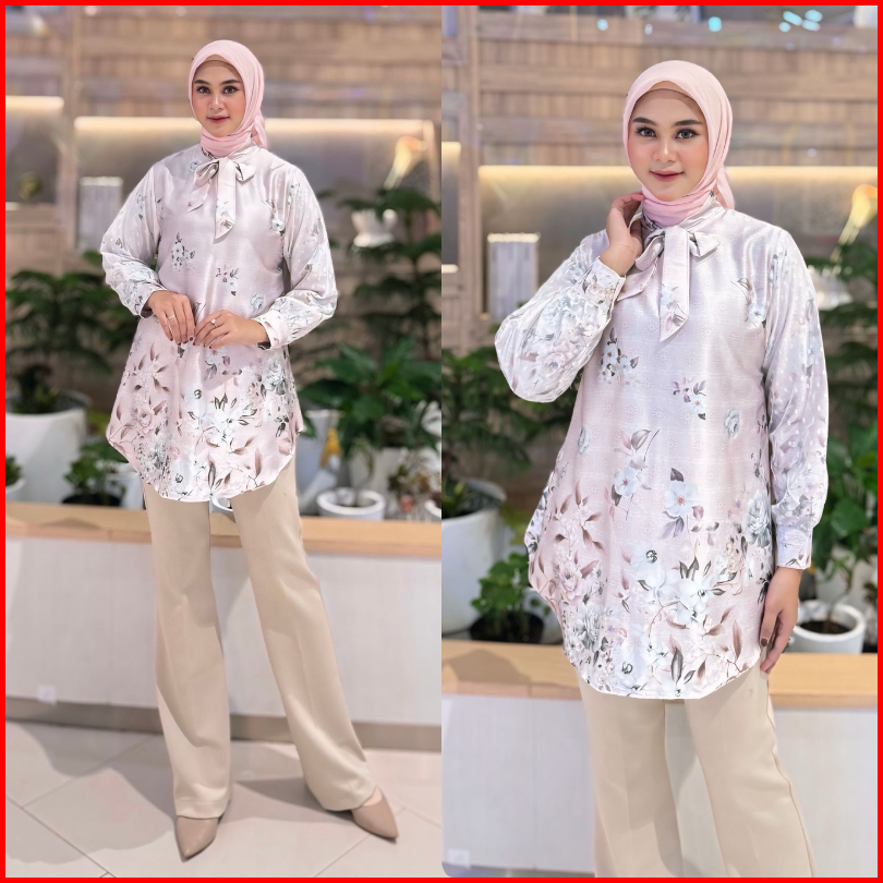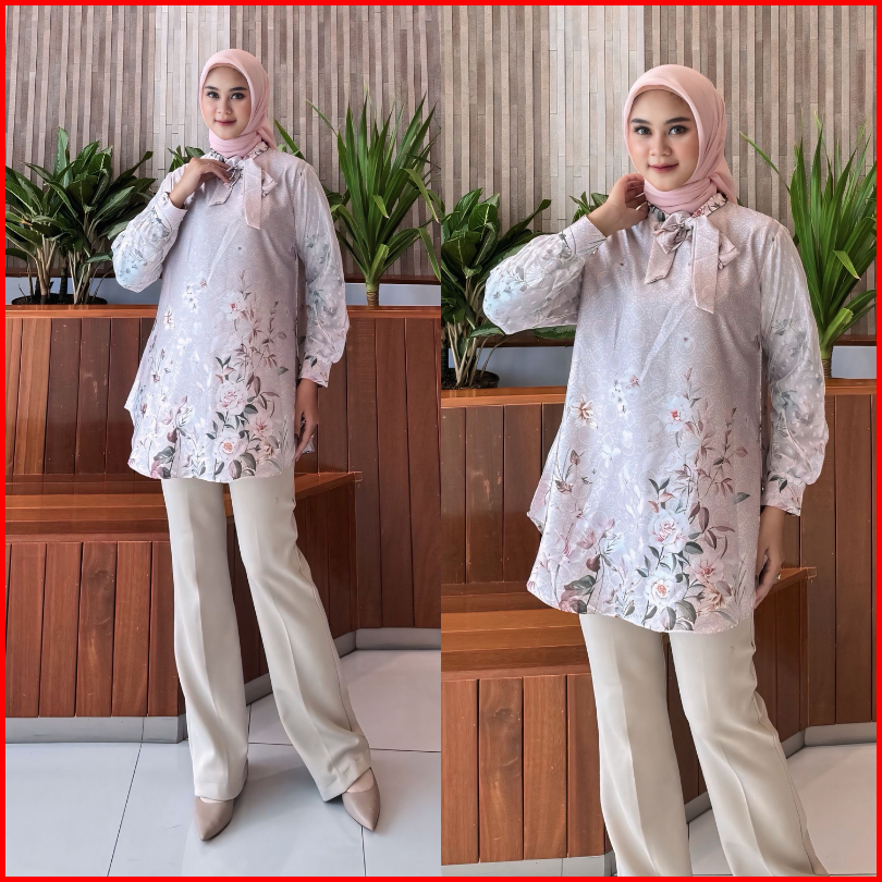 Tara Flower Blouse Ld110 Pb80 Baju Atasan Wanita Muslim Kemeja Motif Kerja Kuliah Lengan Panjang