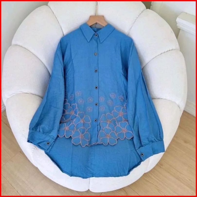 Laura Kemeja Kemeja Wanita Deanda Motif Bordir Kemeja Polo Linen Motif Bunga Bordir Kekinian Blouse Korean Style