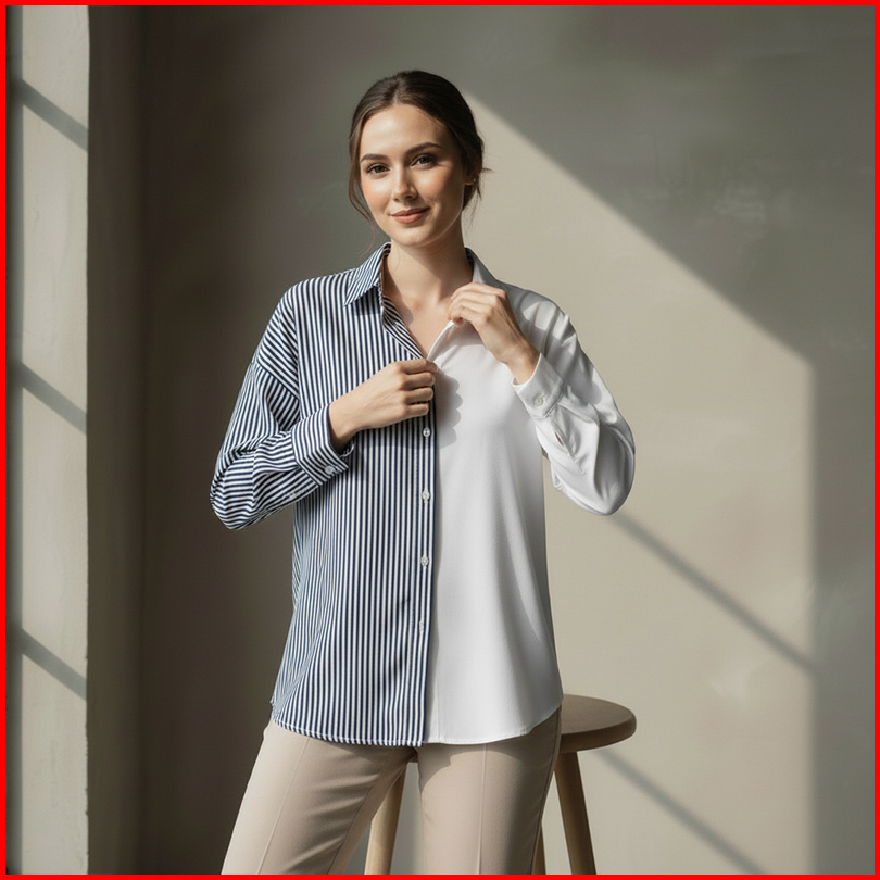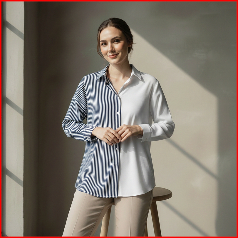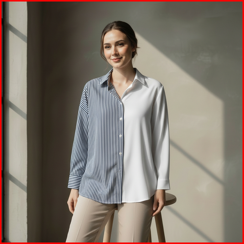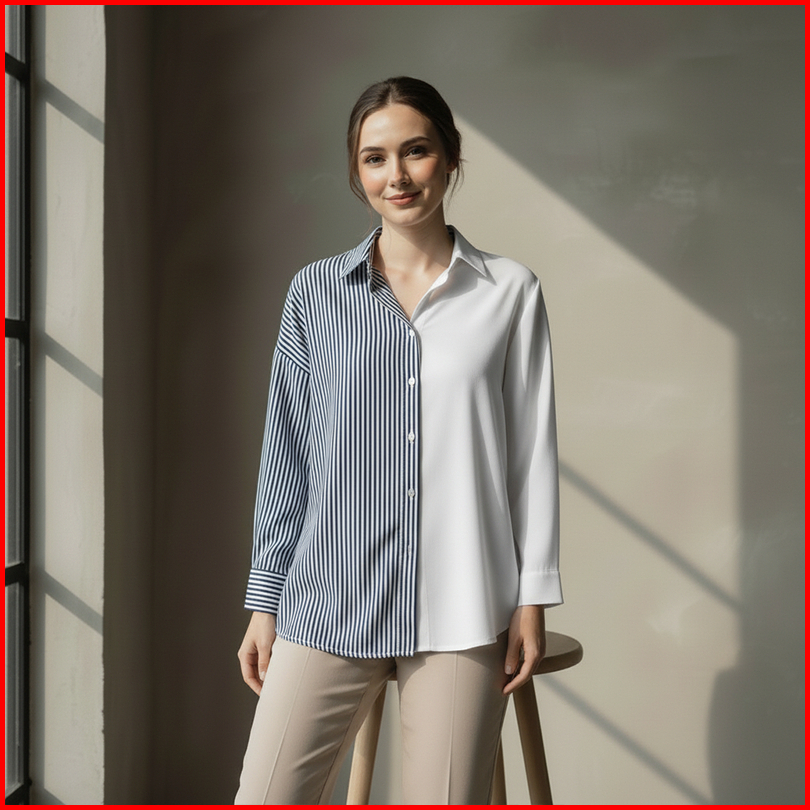 Usagi Kemeja - Ukuran S M L Xl Xxl 3xl 4xl - Kemeja Salur Wanita Jumbo Atasan Wanita Katun Bigsize