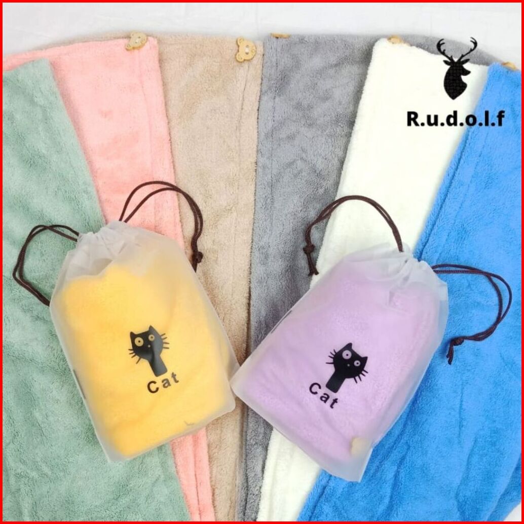 Handuk Kepala Keramas Cepat Kering Bahan Microfiber Rudolf Uk.57x23 Cm - Putih