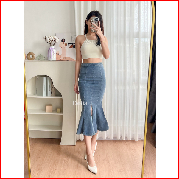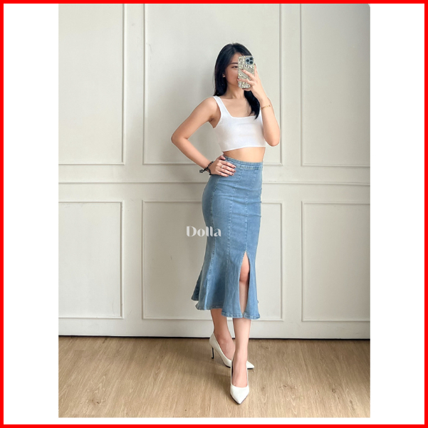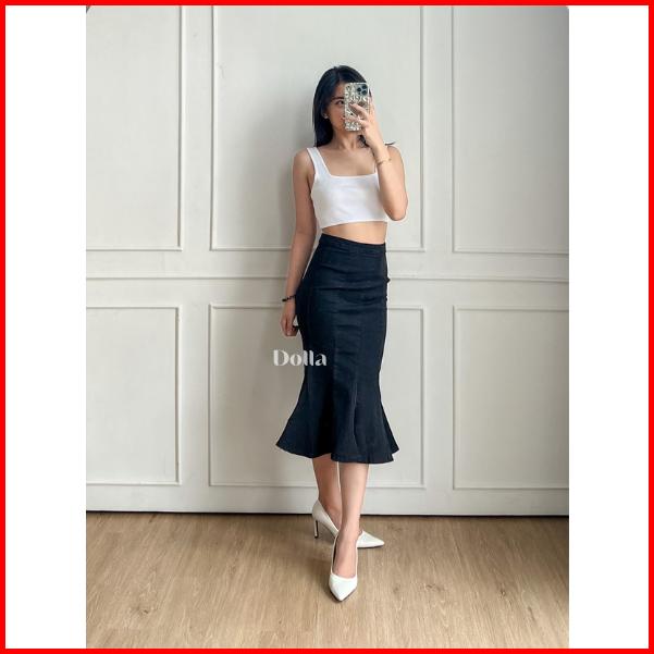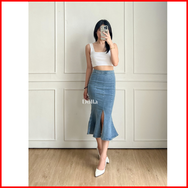 Dolla - Maki Jeans Mermaid Midi Skirt Stretchy J008