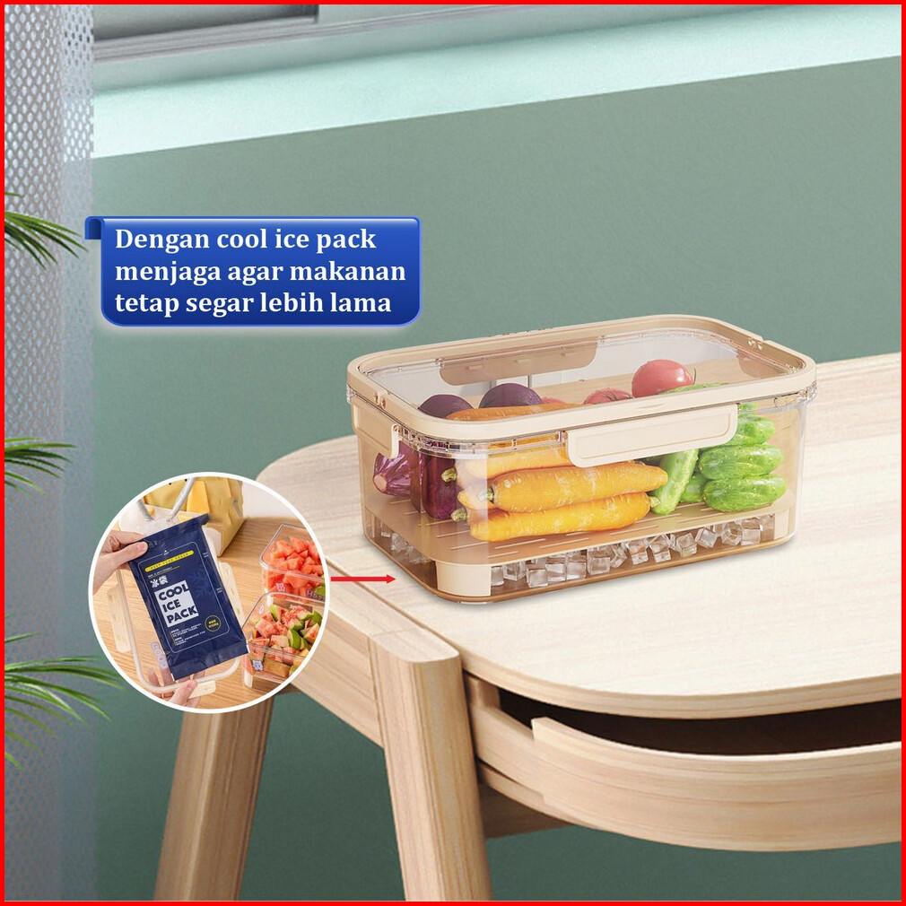 Kotak Penyimpanan Buah Daging Sayur Segar Dengan Cool Ice Pack Kotak Makanan Food Storage Box Transparan Portable Fresh