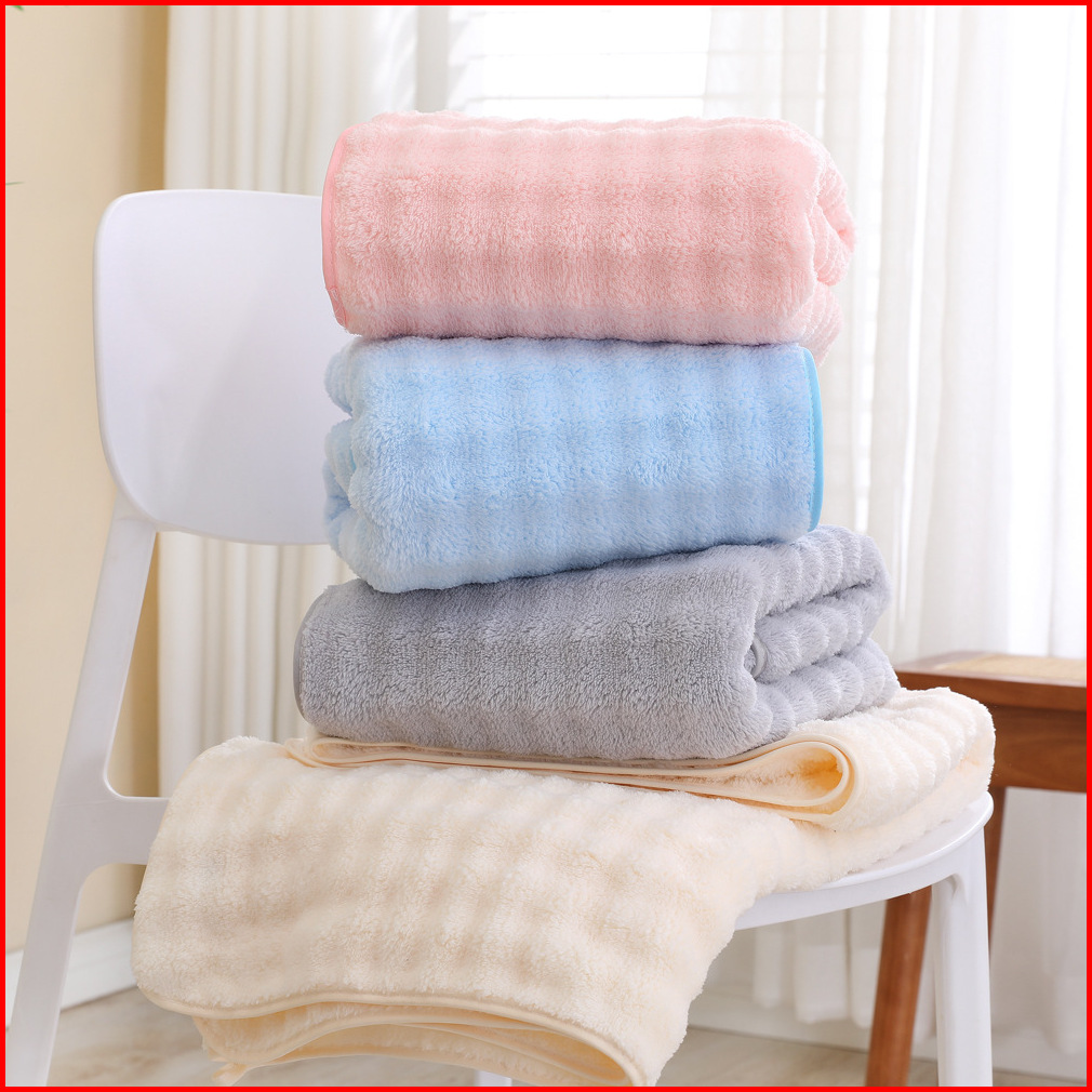 Set Handuk Coral Fleece 2in1 Lembut Tebal Ukuran Besar 70x140 Kecil 35x75 Super Menyerap Cepat Kering