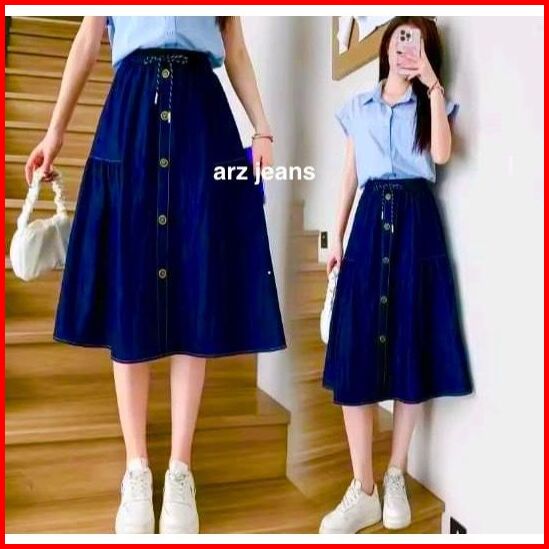 Rok Jeans Skirt 7 8 Denim Thin Style A Line Wanita Tebal Nyaman