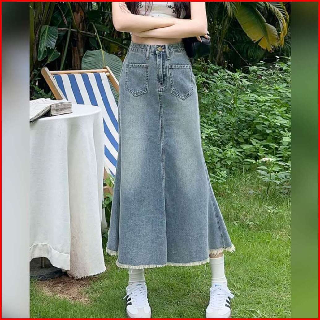 Rok Midi Jeans Wanita Highwaist Retro Korealook