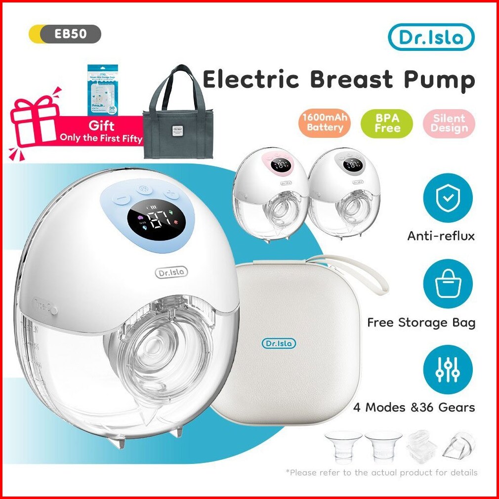 Free Gift Dr.isla Pompa Asi Electric Handsfree 4 Mode 36 Level Breast Pump Portable 19mm 24mm 27mm Bayi Baru Lahir Penam