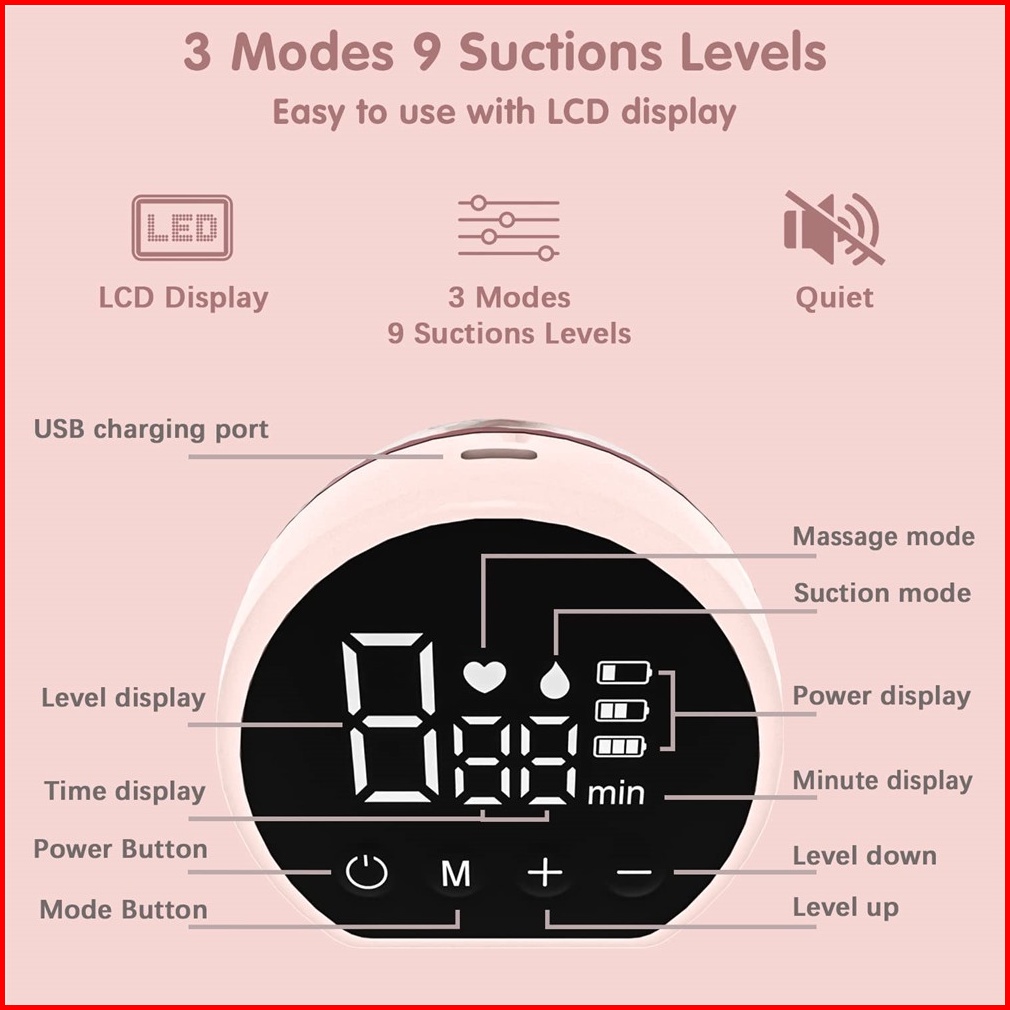 Pompa Asi Elektrik Wearable Breast Pump Handsfree Portable Rechargeable Pompa Led Display 2 Mode 9 Level 24mm Dapat Dipa