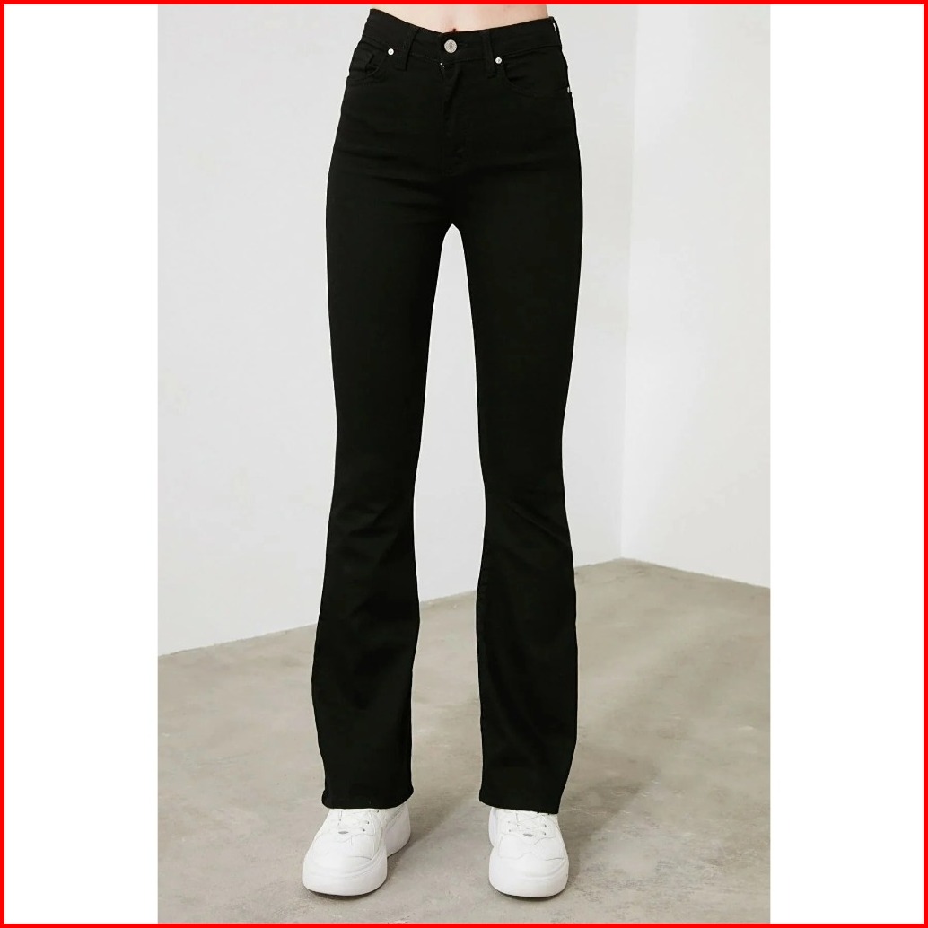 Celana Cutbray Jeans Wanita Fit Flare Pinggang Highwaist Panjang Full Kaki Bahan Stretch Melar