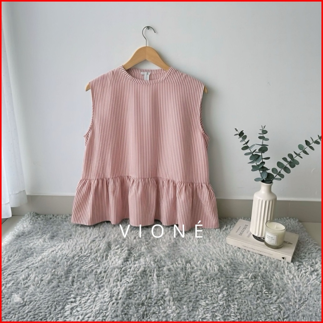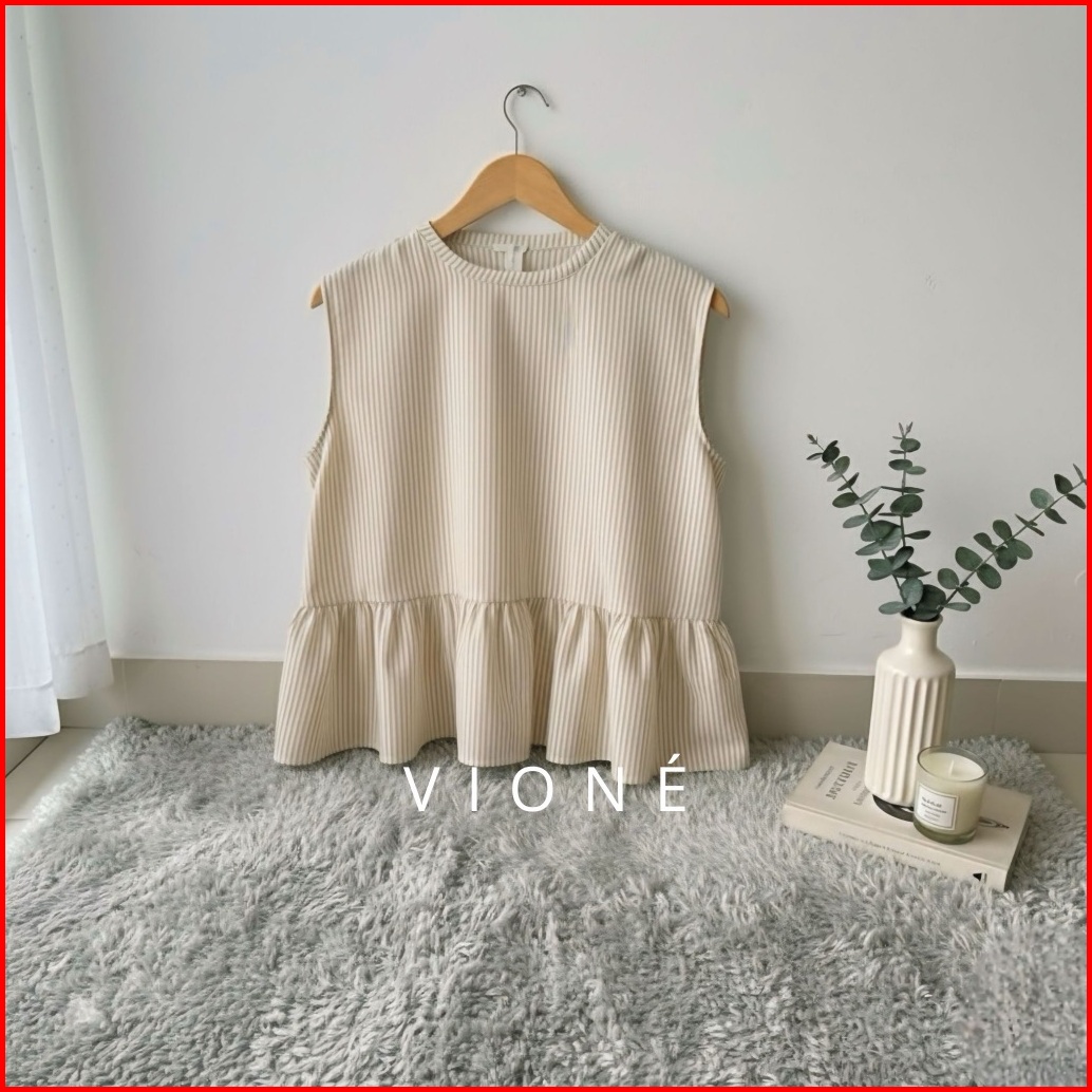Vione - Amora Inner Katun Stripe Vest Ruffle - Atasan Inner Rompi Wanita