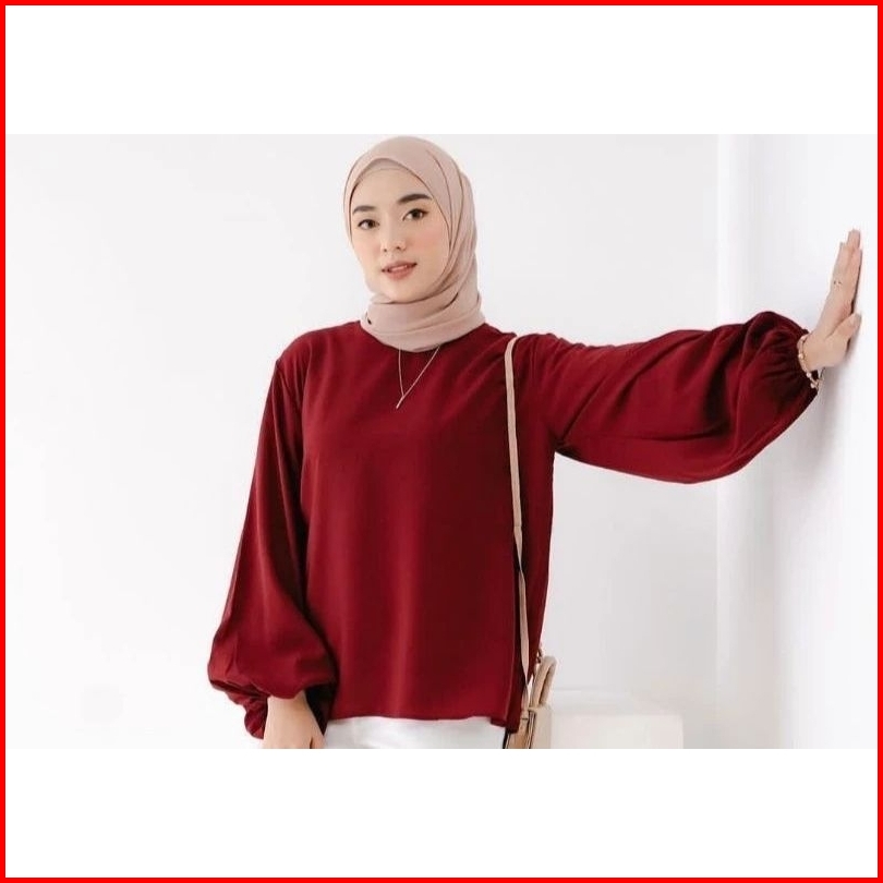 Atasan Blouse Wanita Polos Terbaru Lengan Panjang Lengan Balon Korean Style