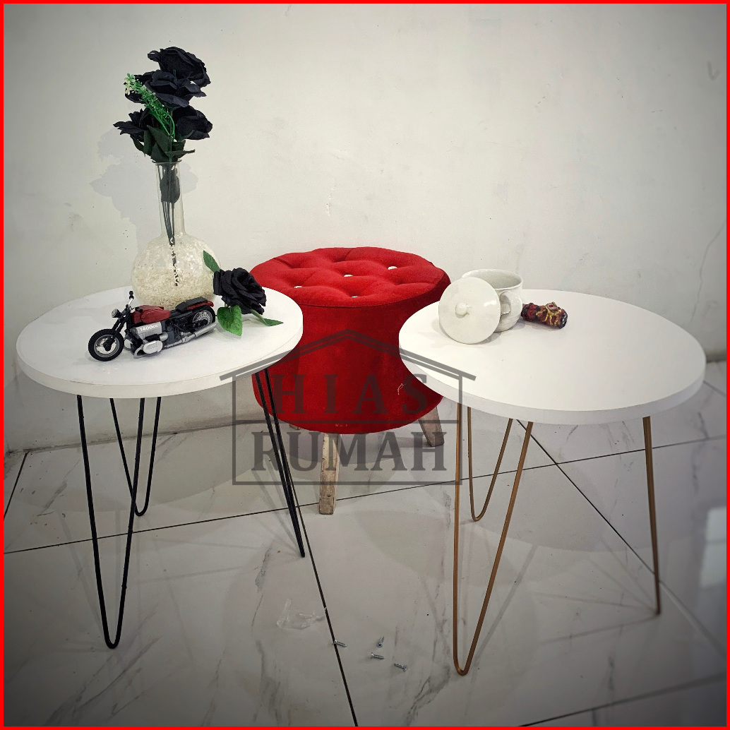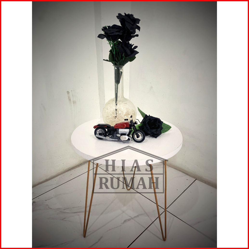 Meja Bulat Putih Kaki Table Coffee Meja Diameter 40 Cm Meja Sudut Nakas Meja Kaki Besi Meja Bulat Aesthetic Table Coffee