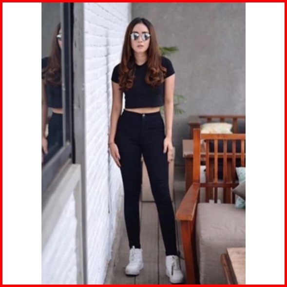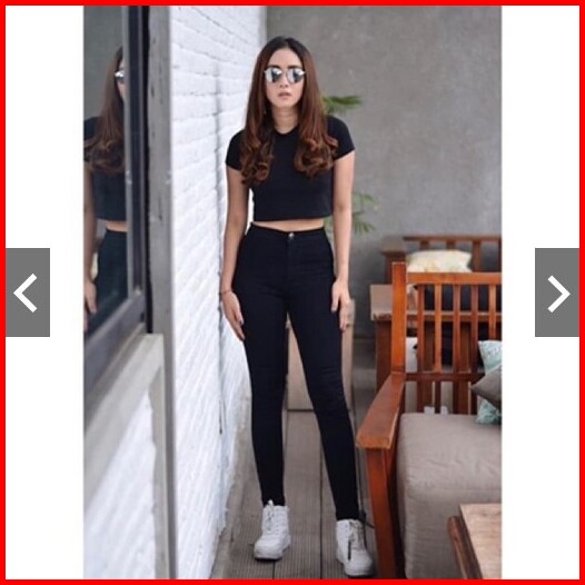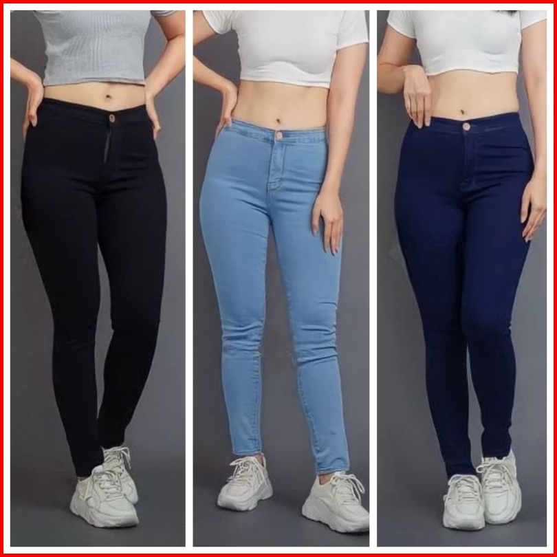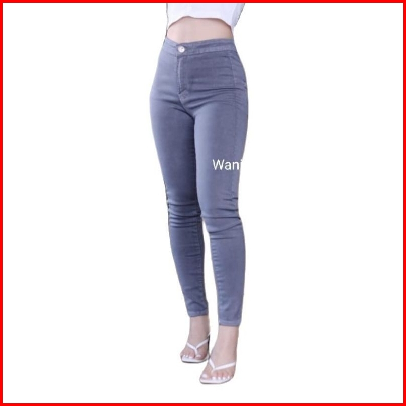 Hightwaist Jeans Wanita 5 Warna Grey Hitam Navy Light Dan Putih