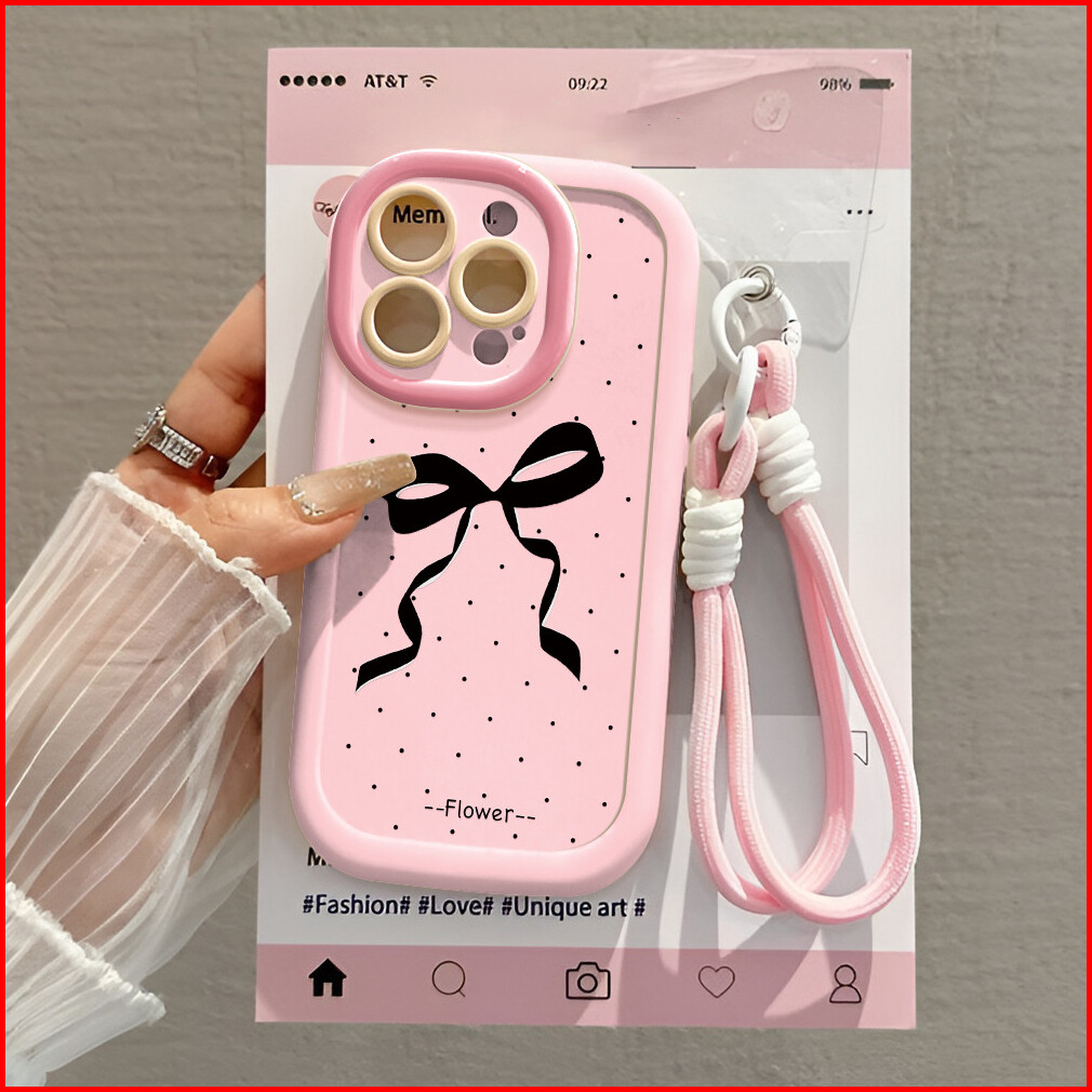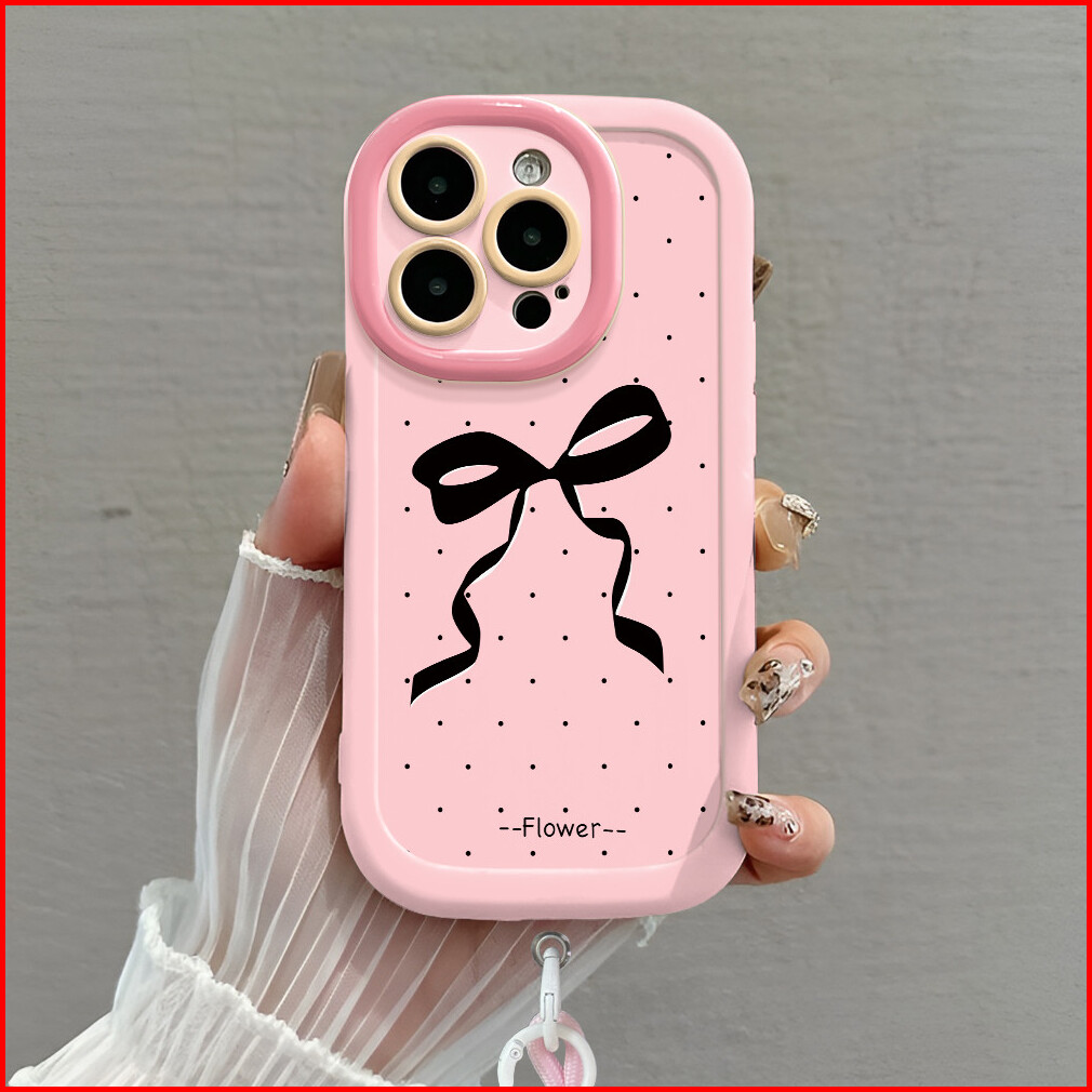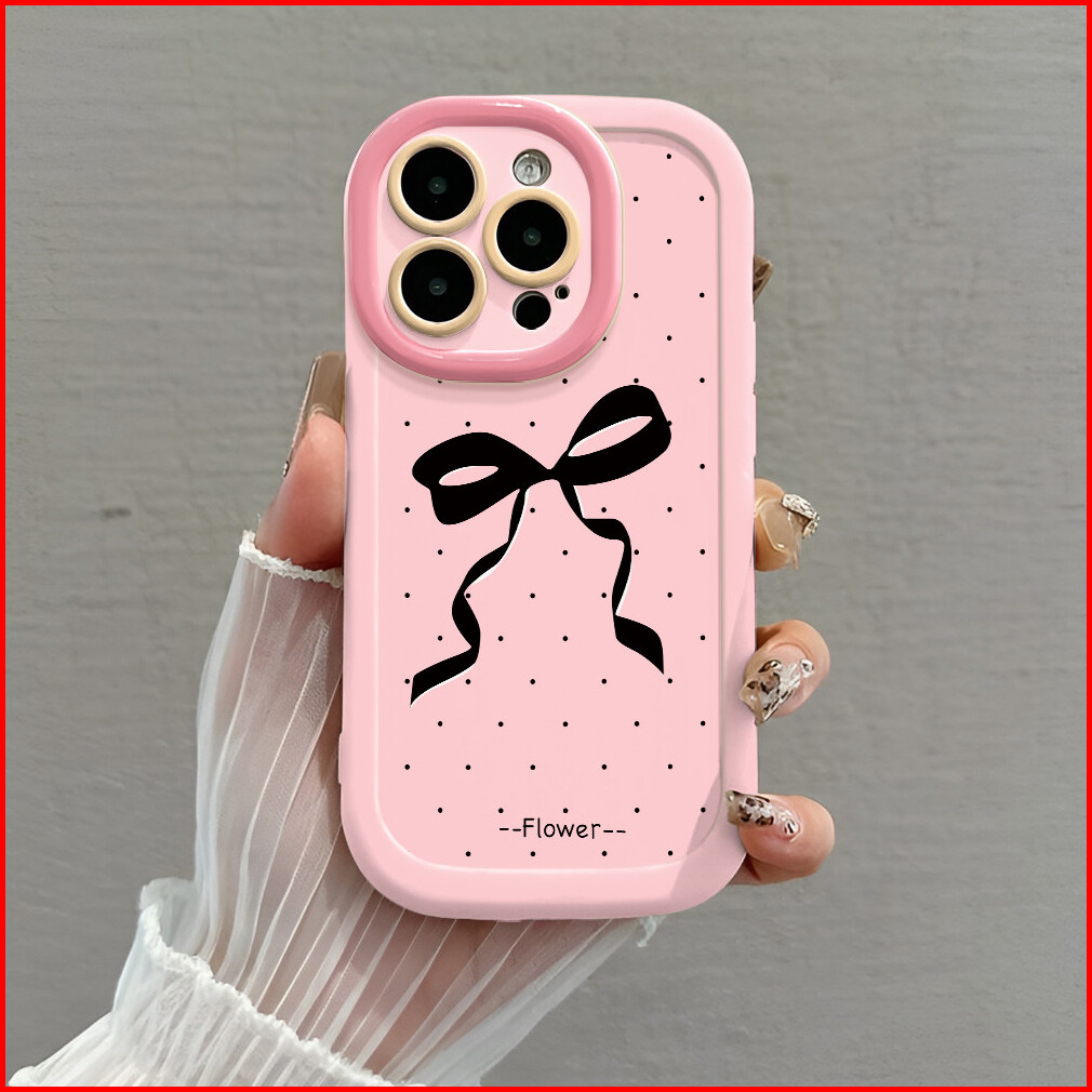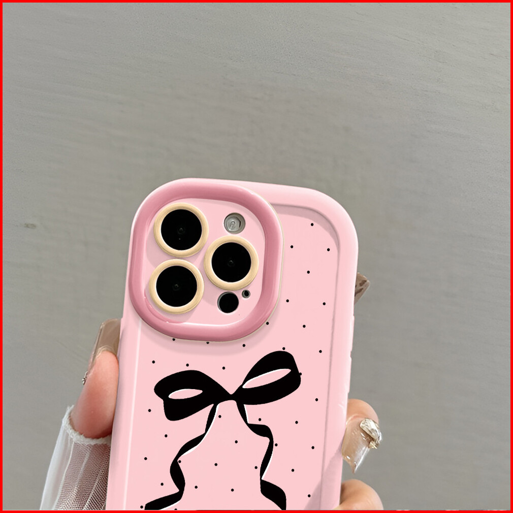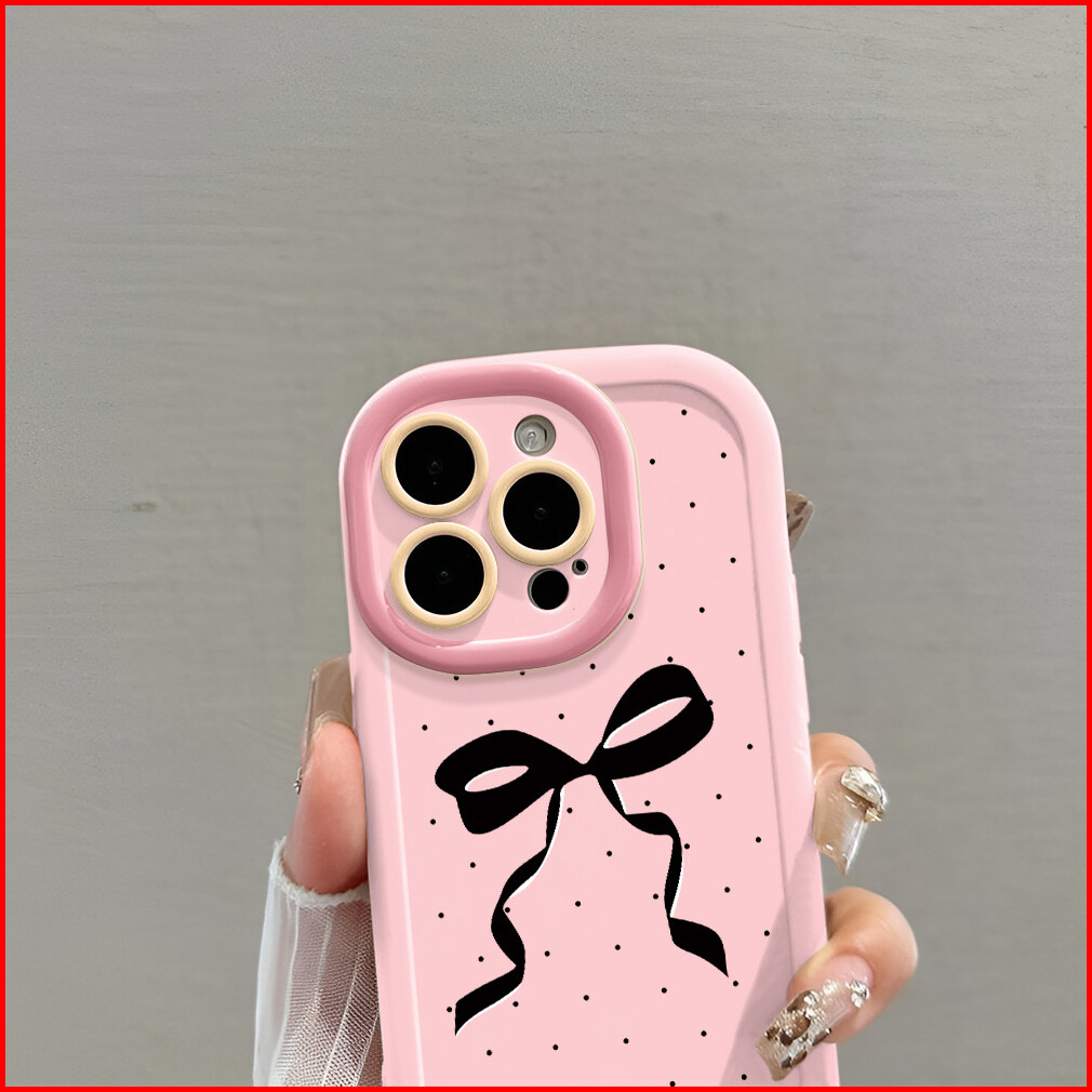 Casing Hp Untuk Iphone 16 11 12 13 14 15 Pro Xs Xr 14 Plus 15 Pro Max 7 8 6 7 8 6 Xs Max Casing Dengan Bow Pink Polka Do