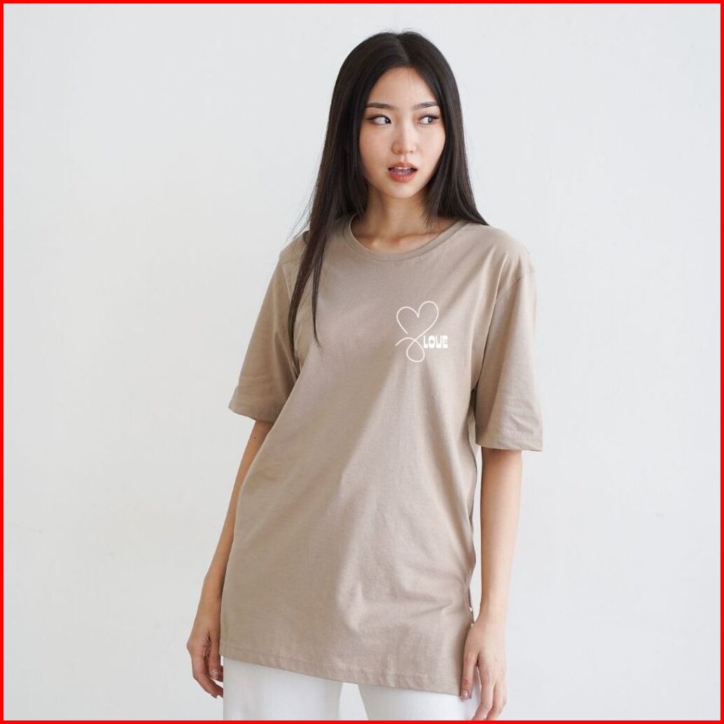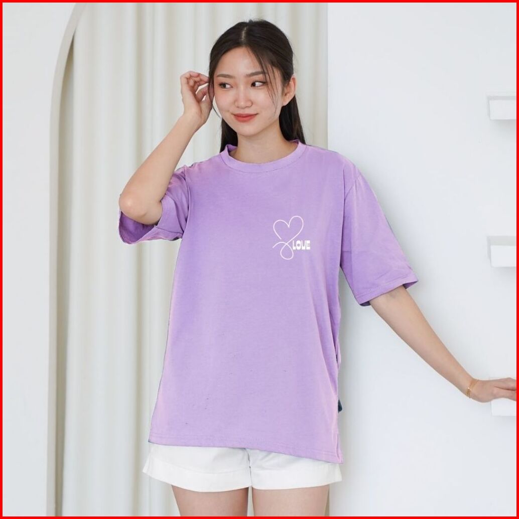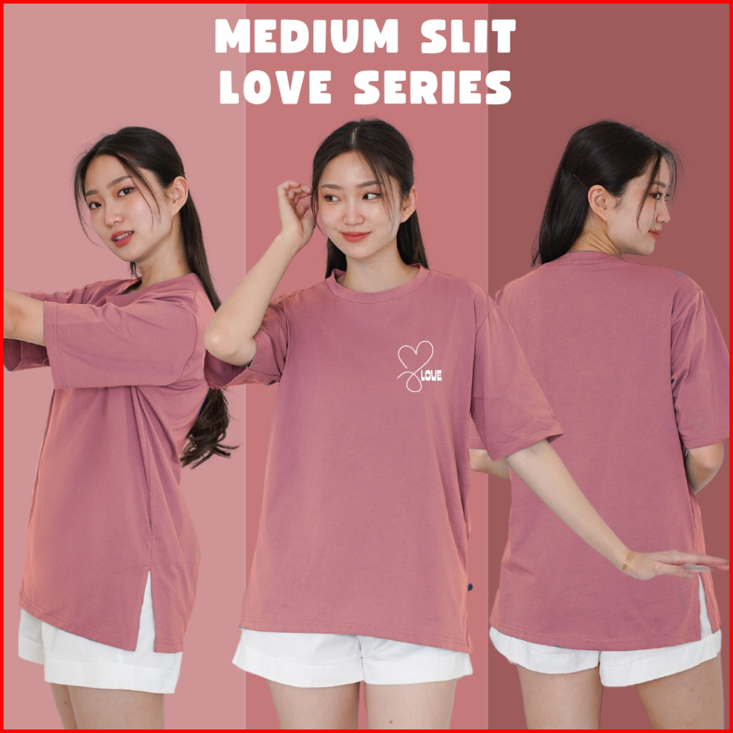 Baju Kaos Love Wanita Oversize Premium Cotton Combed T-shirt Medium Slit Korea