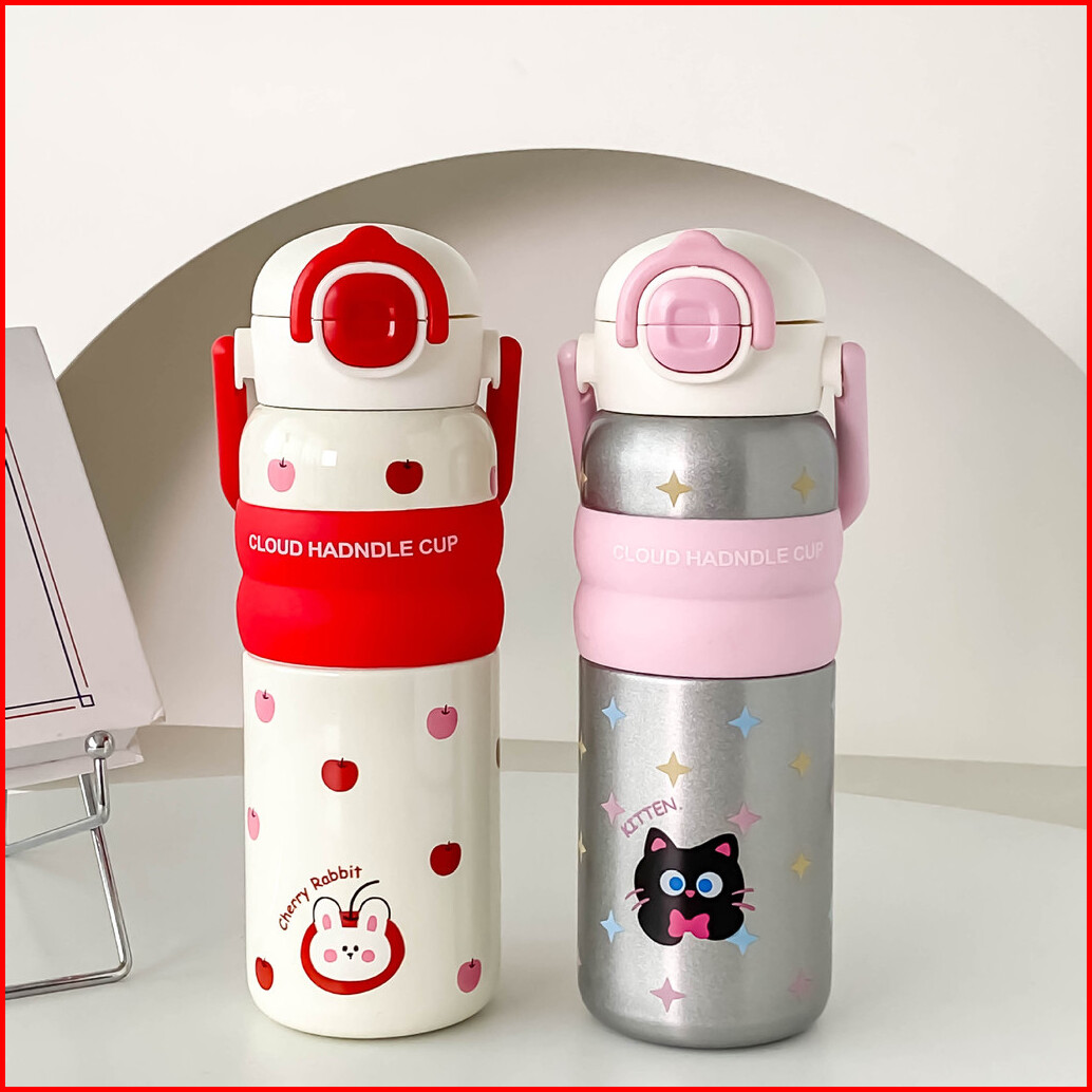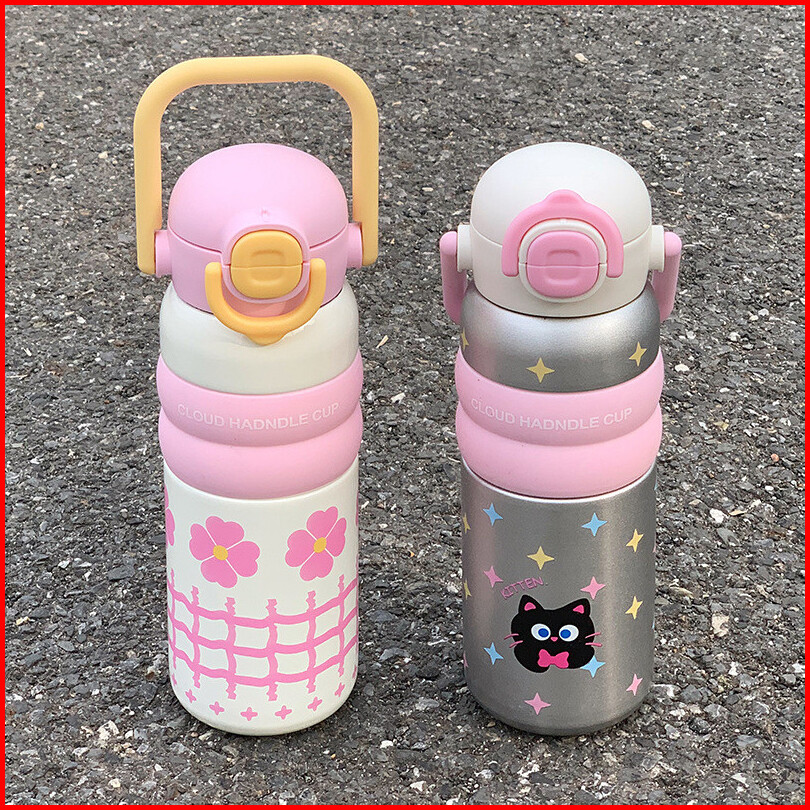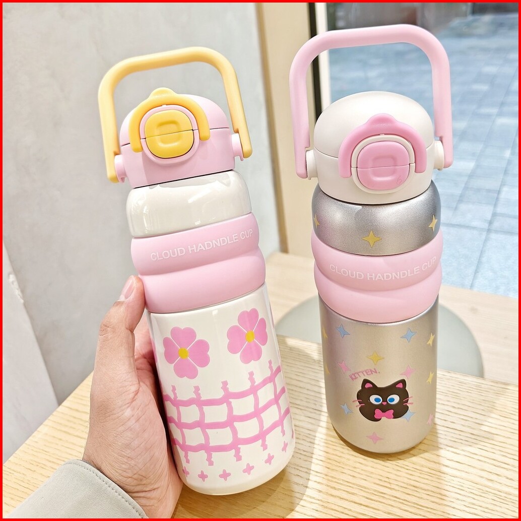 Iris Animal Garden-tumbler Bloom Bunny Handle 600ml Stainless Sus 316 Tumbler Viral Botol Minum Bunny Flower Cat Lucu