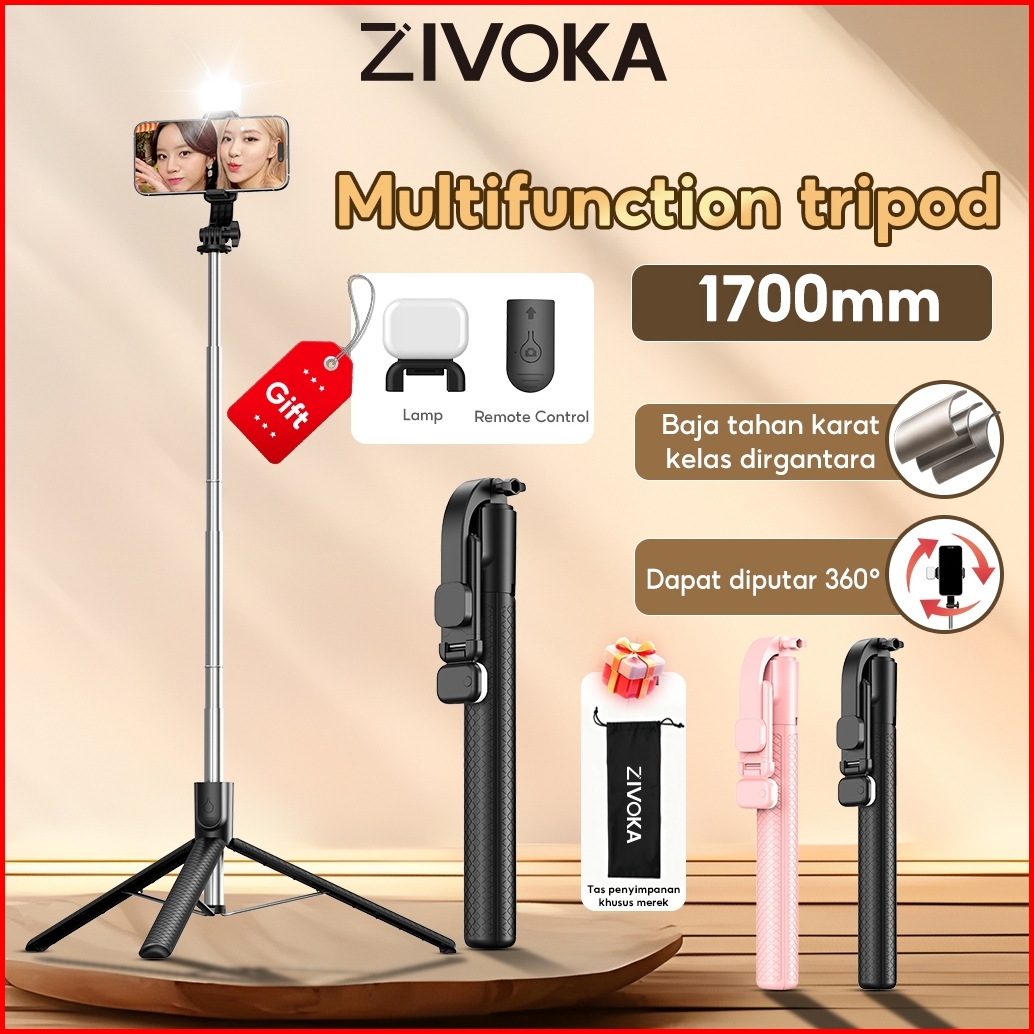 Gratis 100 Asli Lampu Pengisi Zivoka Tripod 170cm Selfie Stick Led Light Remote Bluetooth 170cm Multifungsi Tongkat Self