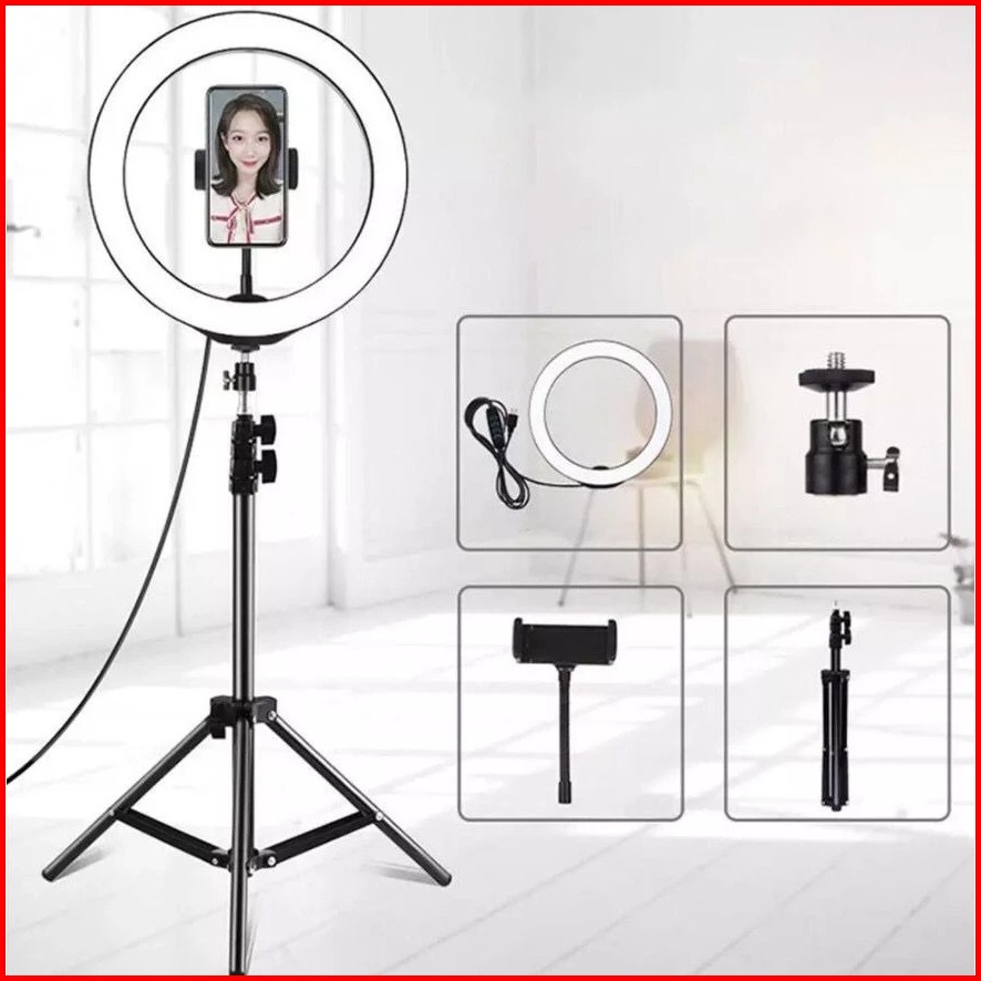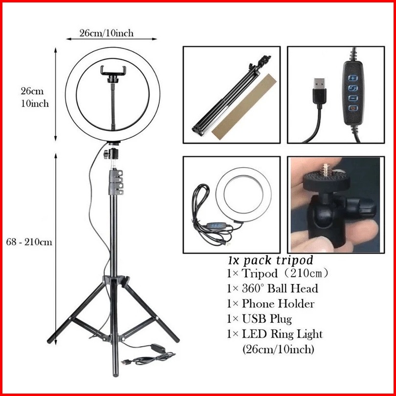 Paket Komplit Murah Ringlight 26cm Tripod 2.1 Meter Make Up Vlog Lampu Ringlight
