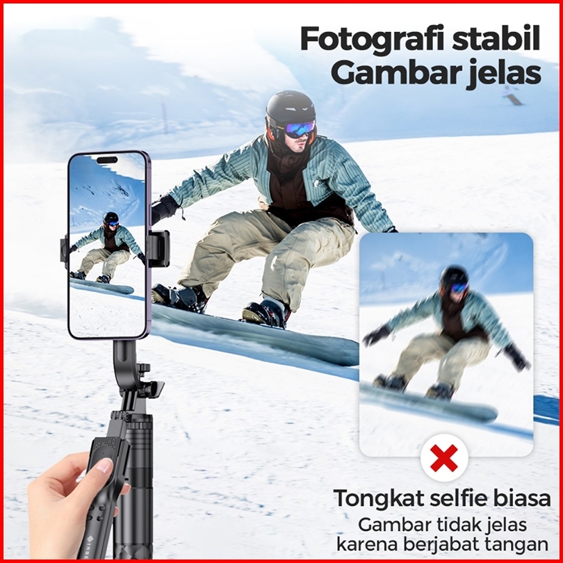 Z18 180cm Tongsis Anti-guncang Tripod Bluetooth Remote With Video Light Kontent Kreator Hp Kamera Gopro Kamera Aksi Dslr