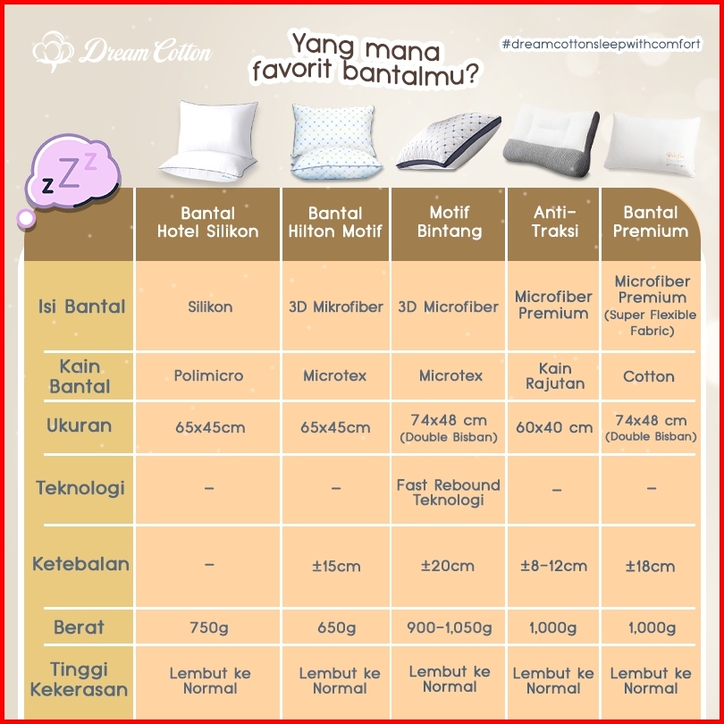Promo 3in1 Dreamcotton Bantal Tidur Guling Silikon Bantal Guling Hotel List Samping Uk 65x45cm Fast Rebound Teknologi An